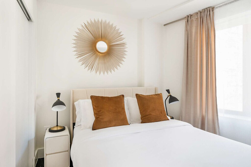 Feel at home in this renovated, fully furnished junior 1-bedroom apartment offering modern comfort in a quiet setting. With a fully equipped kitchen, in-unit washer-dryer combo, heating, AC, and fresh towels, this apartment is designed for convenience. Large windows and a private balcony bring in natural light, while its rear-facing location ensures peace and quiet. Situated in an elevator building with only two apartments per floor, the unit offers privacy and secure smart lock access, making it perfect for business or leisure travelers. Move-in ready—just bring your suitcase! Discover the perfect blend of comfort and convenience in this beautifully renovated, fully furnished junior 1-bedroom apartment in the heart of Hell’s Kitchen. Thoughtfully designed with modern furniture, this bright and airy space features a fully equipped kitchen, a washer-dryer combo in-unit, and essential amenities such as fresh towels, heating, air conditioning, a 43' Smart TV, and high-speed Wi-Fi. Enjoy a private balcony and large windows that fill the apartment with natural light. The apartment is facing the back of the building, providing a quiet escape from the city buzz. Experience the ultimate in modern luxury with this spacious and inviting studio apartment located in prime Midtown West. Perfect for both work and pleasure, this location offers easy access to everything the city has to offer, including museums, great cafes, delis, restaurants, gyms, bars, and pubs. You'll be steps away from Central Park, 9th Avenue's wide variety of restaurants, Rockefeller Center, Times Square, Broadway theaters, 5th Avenue prime shopping, Time Warner Mall, and the culture-packed Lincoln Center. Located in the heart of Hell's Kitchen, this bustling neighborhood in Midtown Manhattan is known for its lively atmosphere, diverse food scene, and proximity to some of the city's top attractions. This area is a hub for theater and entertainment, with numerous Broadway theaters, comedy clubs, and music venues within walking distance. The nearby Hudson River Park provides a beautiful waterfront escape for running, biking, and outdoor activities, and the High Line elevated park is just a short walk away. The neighborhood is also known for its excellent dining options, with everything from casual cafes and bars to high-end restaurants serving cuisine from around the world. Additionally, this area is conveniently located near public transportation, making it easy to get anywhere in the city. Overall, Hell's Kitchen is a vibrant and exciting area with something for everyone, and it's the perfect place to experience the best of New York City. For added security and ease, the building entrance and apartment are equipped with a smart lock and code access. Ideal for both business and leisure travelers, this prime location provides quick access to top dining, entertainment, and transportation options. [SI]