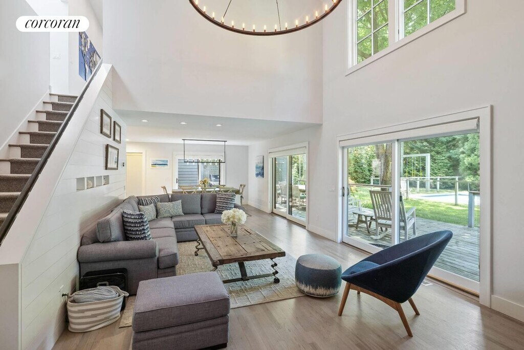 Introducing a stunning newly listed 4-bedroom home nestled on a serene street, just moments away from the charming Sag Harbor Village and Haven's Beach. This inviting residence features a spacious living room with soaring cathedral ceilings and a cozy wood-burning fireplace, seamlessly connected to the dining area. Both spaces are bathed in natural light, enhanced by expansive windows and French doors that open to reveal a picturesque deck, lush garden, and inviting pool. The kitchen is equipped with top-of-the-line appliances and quartz countertops, complemented by a generous breakfast bar with seating for four. On the first floor, you'll also find a versatile extra room that can serve as an office, gym, or fifth bedroom, complete with a full bathroom for added convenience. Upstairs, the impressive 600 SF primary suite boasts a king-size bed, two separate closets, and a cozy sitting area, along with a luxurious ensuite bathroom. The three guest rooms are thoughtfully designed, featuring a mix of king, queen, and twin beds to comfortably accommodate family and friends. Step outside to discover a beautiful private garden, highlighted by a heated saltwater pool measuring 36 x 16 feet. The poolside area is perfect for relaxation, equipped with chaise lounges and side tables, while an additional deck sets the scene for outdoor dining and gatherings. Completing this exceptional property is an attached two-car garage, providing both convenience and ample storage. Don't miss the chance to make this tranquil retreat your own! [[Rental Registration # RP231149]]