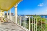 Discover your perfect escape in this stunning 4th floor corner condo! This professionally designed 2-bedroom, 2.5-bath unit with den offers over 2,000 square feet of beautifully furnished living space. The corner location provides amazing ocean breezes and partial ocean views from your huge wrap-around balcony - perfect for morning coffee and sunset cocktails. Step off the elevator into your private foyer, then enjoy the open floor plan with granite countertops, white cabinets, and crown molding throughout. The kitchen features a large pantry, while high-impact glass and sliders maximize natural light. Your detached garage and in-unit washer/dryer add convenience. Overlook the pool and nature preserves while being steps from shopping and dining. More... Available for May through November at off-season. Available Dec through April next Season. or Annual..? Bring your dates for this Awesome property...