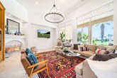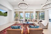 Property Id: 1952140 Residencia Palmeras is a luxury desert retreat on one of the largest lots in PGA West, offering sweeping views of the Santa Rosa Mountains and Nicklaus Tournament Course. Enter through a serene courtyard with waterfalls and a bridge over a tranquil water feature. The west-facing backyard features a private pool, oversized spa with cascading waterfall, wading pool, outdoor kitchen with BBQ, grassy lawn, and a covered patio with new concrete — ideal for lounging or entertaining. Inside, enjoy 14-ft ceilings, floor-to-ceiling windows, and a bright, open layout. The chef's kitchen includes granite counters, a two-tiered island, and walk-in pantry. The home offers 3 spacious bedrooms, a den/office (optional 4th bedroom), and a detached casita with private bath. The primary suite features a walk-in closet, dual vanities, soaking tub, and shower. Perfect for golf getaways or peaceful escapes. Refundable security deposit required. Full details upon booking.