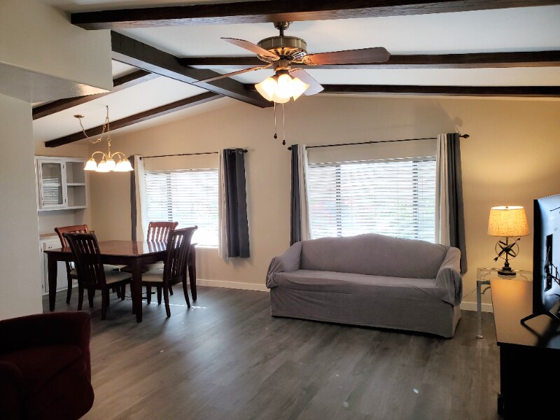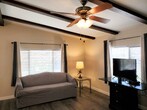 Property Id: 2274511 Newly remodeled 2 bedroom, 2 bath, 1152 square foot home in a quiet community. HOME IS IN A 55 AND OLDER AGE RESTRICTED COMMUNITY. Home has a large screened in Arizona room, large storage room and an air conditioned shed. Home is located in an age restricted manufactured home park in gated Brentwood Southern. There is a covered carport for 2 vehicles. High beamed ceilings in living and dining room and textured painted walls. Just finished installing new premium vinyl plank flooring throughout the home with ceramic tile in both bathrooms with new toilets. Large master bedroom with two closets and shelving. Sunken bathtub in master bathroom with new double sink vanity & faucets. Newly remodeled kitchen has new quartz kitchen countertops & deep large single stainless steel sink & faucet, two pantries, new French door refrigerator & dishwasher, refinished kitchen cabinets & new hardware, light fixture and a full size washer & dryer. New front door & dead bolt locks. Charbroil BBQ grill. There are new wooden blinds and heat resistant curtains on all windows. Entire interior of home was just painted with 4" baseboards throughout the home. AC and heat climate controlled. Amenities include indoor pool & spa, outdoor pool, BBQ grilles, community center and plenty of weekly activities. Close to all major stores, Superstition Springs shopping Center and the 60 and 202 highways.