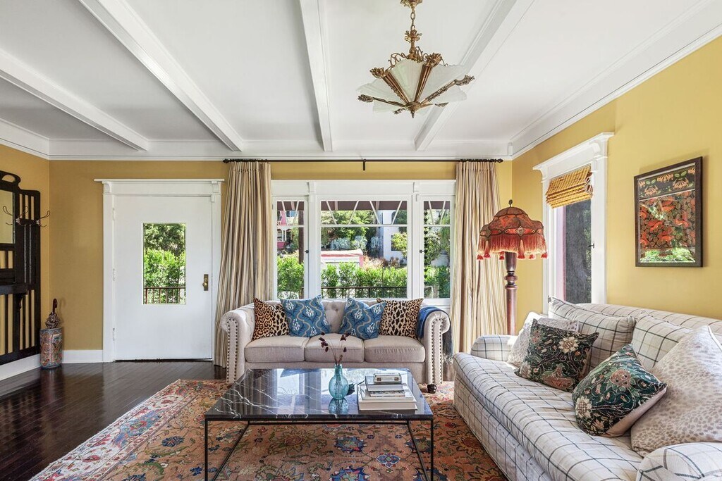 Gorgeous 1909 Craftsman which has been meticulously restored in the heart of Silver Lake. Beyond the hedges and relaxing front porch, enter through the original front door to an open floor plan with magnificent views, elegance, natural light, character built-ins, beamed ceilings and privacy. Pocket doors unveil a spacious sitting room complete with tin ceiling and speak-easy bar area. The large living room and stunning dining room overlooks the grassy yard and spectacular views. The kitchen features a fully stocked chef's dream boasting custom emerald colored cabinetry, microwave, toaster oven, dishwasher, coffee maker, country sink, European gas range and plenty of storage and prep area to create a gourmet meal. Upstairs, find three bedrooms, an office/daybed room with closet, an en-suite rose toned bedroom with queen bed and views of the historic neighborhood, and the primary bedroom featuring a luxurious king bed and sitting area with views to Century City plus an en-suite bath. The large grassy backyard with citrus trees is fully enclosed. Beautiful hardwood floors throughout and designer tile in kitchen and baths. Situated in the heart of Silverlake steps from shops, popular eateries Silverlake Ramen, All Day Baby, L&E Oyster, all of the excitement on Sunset Blvd and the Reservoir.