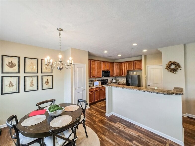 Better than new! This SHARP townhome in the Village of Pine offers many upgrades: freshly painted, upgraded wood cabinets, LVP hardwood floors throughout the entire home, private rear deck, finished lower level gameroom, plus a 4th bedroom and full bath. This floor plan offers an open-concept living space on the first floor with a great room for dining and entertaining. The kitchen features a breakfast bar, and white subway tile backsplash with plenty of cabinet and counter space. Upstairs, the large owner's suite offers a walk-in closet & an upgraded bath with tiled shower, dual vanities, and soaking tub. There are 2 spacious bedrooms, a second hall bath, & laundry room as well. The finished lower level offers a gameroom space as well as a guest suite/home office and full bath. Outside, you'll enjoy rolling views from the deck. This townhome offers a community with Market District, shopping, dining, and Oxford Athletic Club, multiple parks, and playgrounds outside your door.
