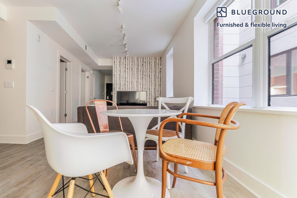 Feel at home wherever you choose to live with Blueground. You’ll love this bright Capitol Riverfront furnished two bedroom apartment with its modern decor, fully equipped kitchen, and roomy living room. Ideally located, you’re close to all the best that Washington, D.C. has to offer! (ID #WDC1153) The advertised rate of $3,550/month is the lowest available price, based on a 1 month(s) and 29 day(s) stay with a move-in date of November 9, 2025. If you’re looking for a 1-year stay, the rate is $5,010/month. Rates vary depending on the duration of stay, season, and other parameters. For exact pricing and additional pricing components, please visit our website and enter your desired move-in and move-out dates. The rate is applicable when billed upfront; it can be higher if billed in multiple payments. Brokers are welcome to reach out. Were you looking for an unfurnished lease? Try Blueground instead and upgrade from unfurnished to furnished living: - Furnished at rates comparable to unfurnished - No setup or furniture costs - save thousands - Move-in ready - save time, just bring your suitcase Designed with you in mind As with any Blueground apartment, you’ll find a thoughtfully designed space complete with beautiful furniture and a fully equipped kitchen in this two bedroom property. And, thanks to our superior quality mattresses, luxury linens, and towels, you can relax knowing you’ll always feel comfortably at home. When you’re ready for some fun, you can take in the Washington, D.C. vibes or bring the entertainment to you with the premium wireless speaker or smart TV. This apartment also offers in-apartment laundry. Sleeping arrangements King Bed, 70.8in/180cm Queen Bed, 63in/160cm Amenities Building amenities unique to this two bedroom apartment include an on-site: - Dryer - Elevator - Washing machine - Pets allowed Arrival and ongoing support The entire apartment is yours to enjoy! Throughout your stay, you’ll have access to our Client Experience team through the Blueground App. You can schedule additional cleanings, submit maintenance requests, and view our neighborhood recommendations with just a few taps. We’ll share all details upon confirmation of your stay. Other things to note Building amenities may have an extra cost. This Blueground apartment has flexible lease options, allowing you to book it for one month, a year, or more. Pets are welcome, though weight limits and breed restrictions apply and may incur fees. We take great pride in ensuring every photo displayed is shot in our own units with our actual furnishings. That said, we regularly refresh our decor and furniture arrangement, which may differ from what’s pictured.