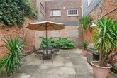 Property Id: 2045895 in this magnificent tree house condo, which is housed in a townhouse from the 1830s. Beautiful, character-filled pine floors, original exposed brick and plaster walls, lofty 12-foot ceilings that add style to your furniture, Yes, we do have everything. The main bathroom is the focal point. For times when you can't choose between refreshment and indulgence, there's a clawfoot tub and a walk-in shower. Two sinks with concealed medicine cabinets seen through framed mirrors. We refer to the second bathroom as a "embarrassment of riches" that guests can use privately. The bedroom has built-in shelves and bookcases that are perfect for storing your valuable books, jewelry, and artwork. Additionally, the living area features 10-foot guillotine windows that let in natural light.