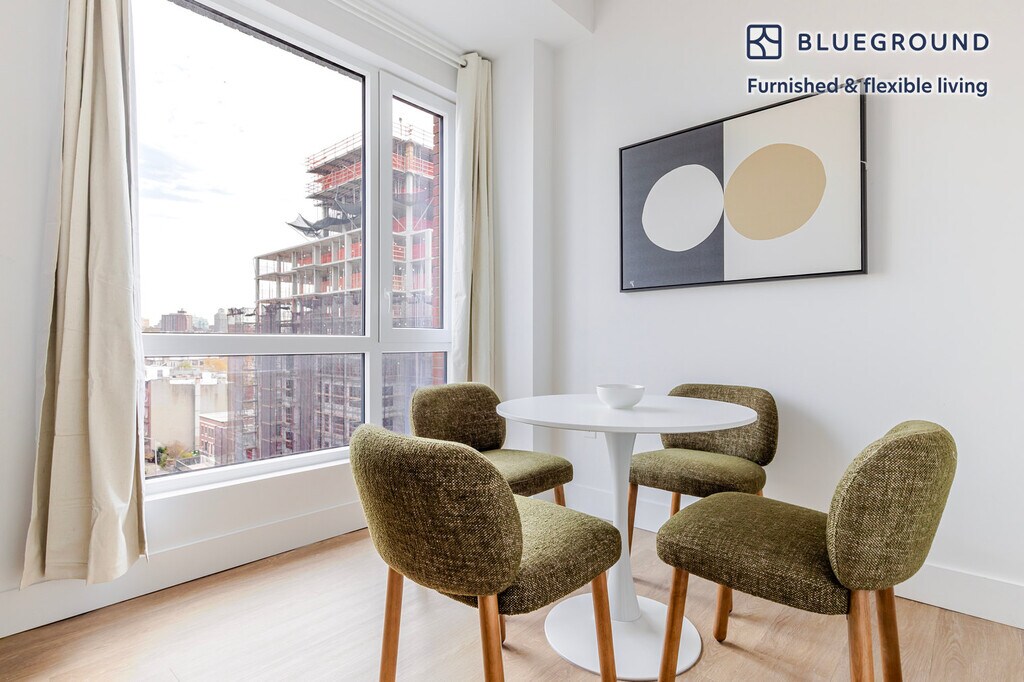 Feel at home wherever you choose to live with Blueground. You’ll love this bright Boerum Hill furnished two bedroom apartment with its modern decor, fully equipped kitchen, and roomy living room. Ideally located, you’re close to all the best that New York has to offer! (ID #NYC2151) The advertised rate of $6,220/month is the lowest available price, based on a 1 month(s) and 10 day(s) stay with a move-in date of January 13, 2026. If you’re looking for a 1-year stay, the rate is $6,930/month. Rates vary depending on the duration of stay, season, and other parameters. For exact pricing and additional pricing components, please visit our website and enter your desired move-in and move-out dates. The rate is applicable when billed upfront; it can be higher if billed in multiple payments. Brokers are welcome to reach out. Were you looking for an unfurnished lease? Try Blueground instead and upgrade from unfurnished to furnished living: - Furnished at rates comparable to unfurnished - No setup or furniture costs - save thousands - Move-in ready - save time, just bring your suitcase Designed with you in mind Thoughtfully designed with bespoke finishes, modern furnishings, and a fully equipped kitchen, you’ll enjoy that “I’m home” feeling with this Blueground apartment. Whether you’re lounging in your cozy living room streaming the latest and greatest entertainment on the smart TV or premium wireless speaker, or getting some well-earned rest on the superior quality mattress with luxury linens, you’ll fall in love with everything this Boerum Hill apartment has to offer. Sleeping arrangements Queen Bed, 63in/160cm Queen Bed, 63in/160cm Amenities Building amenities unique to this two bedroom apartment include an on-site: - Dryer in building - Elevator - Washing machine in building Arrival and ongoing support The entire apartment is yours to enjoy! Throughout your stay, you’ll have access to our Client Experience team through the Blueground App. You can schedule additional cleanings, submit maintenance requests, and view our neighborhood recommendations with just a few taps. We’ll share all details upon confirmation of your stay. Ideally Located Petite Boerum Hill is located in downtown Brooklyn. The convenient neighborhood is known for its historic row houses and lovely views. There are wonderful bakeries and Italian restaurants, as well as everything from African and Caribbean food to vegan diners in nearby Fort Greene. Boerum Hill is steps from the Barclays Center arena, where you can catch basketball and soccer games or the latest big-name concert. Another neighborhood highlight is the NY Transit Museum, a family friendly spot where you can see historic subway cars and buses and wander through an abandoned station. Nearby Fort Greene Park is perfect for a picnic or game of tennis. Boerum Hill has unparalleled subway and Long Island Railroad access, thanks to Atlantic Terminal. Other things to note Building amenities may have an extra cost. This Blueground apartment has flexible lease options, allowing you to book it for one month, a year, or more. Brokes CYOF. We take great pride in ensuring every photo displayed is shot in our own units with our actual furnishings. That said, we regularly refresh our decor and furniture arrangement, which may differ from what’s pictured. [SI]
