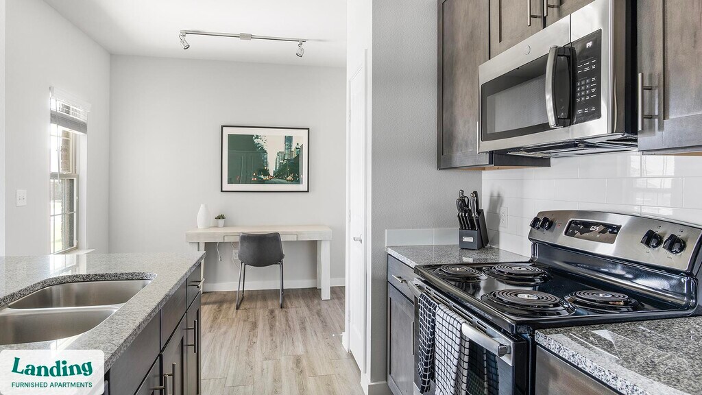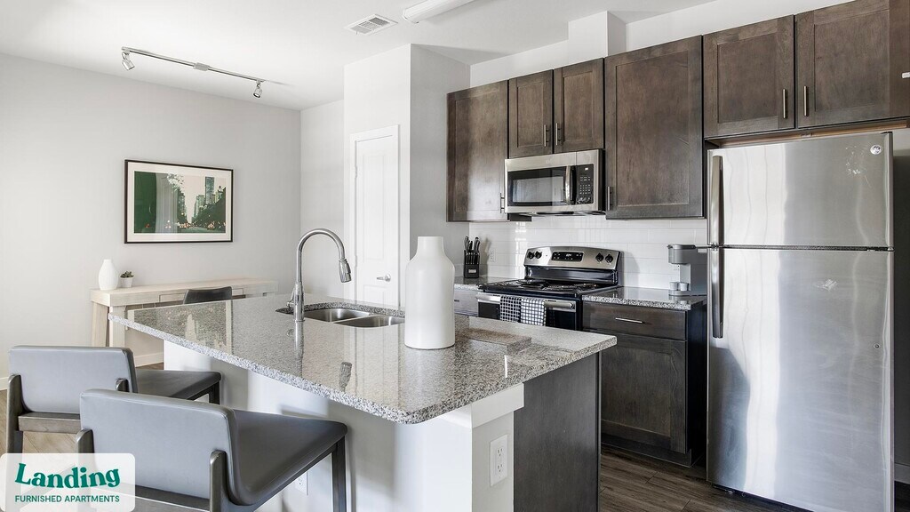 Landing offers flexible lease terms from weeks to months. Please always visit our website or contact us for the latest pricing & availability. Stay longer, save more: 6-Month Minimum base rent: starts at $1919/mo 12-Month Minimum base rent: starts at $1683/mo Landing offers flexible leases across a network of over 35,000 fully-furnished apartments throughout 375+ cities so you can rent on your terms, practically anywhere, and avoid the hassle of paying deposits or application fees. Visit to learn about all the benefits of a Landing membership, see our competitive up-to-date pricing, explore available apartments, take virtual tours, and make reservations online without jumping through traditional rental hoops. Landing's apartments at Clark Ridge Canyon are designed for comfortable, easy living, with the ability to stay as long as you like. Experience living with Landing Every apartment is outfitted with all the modern essentials including: custom-designed furnishings, a fully-equipped kitchen with deluxe stainless steel appliances, a gourmet coffee maker, premium linens, Smart TVs, and incredibly fast, reliable internet for working from home. When you live with Landing, you'll enjoy a hassle-free experience with the added benefit of 24/7 access to our dedicated member experience team. Some of the nitty-gritty: a background check and proof of income are required; we're completely smoke-free; bundled utility packages and pricing vary based on length of stay; pet-friendly options available; listed price reflects a 12-month minimum stay.