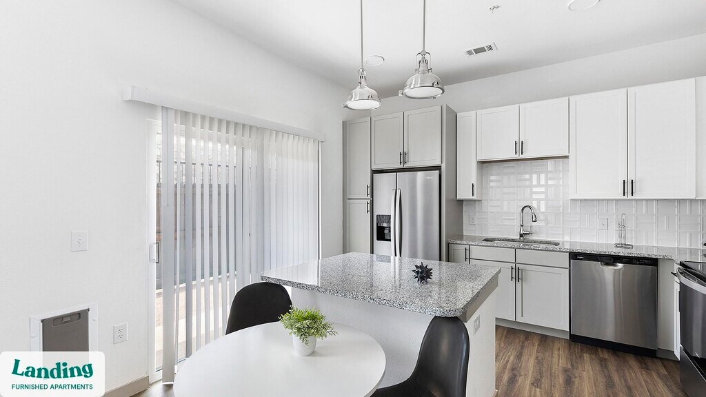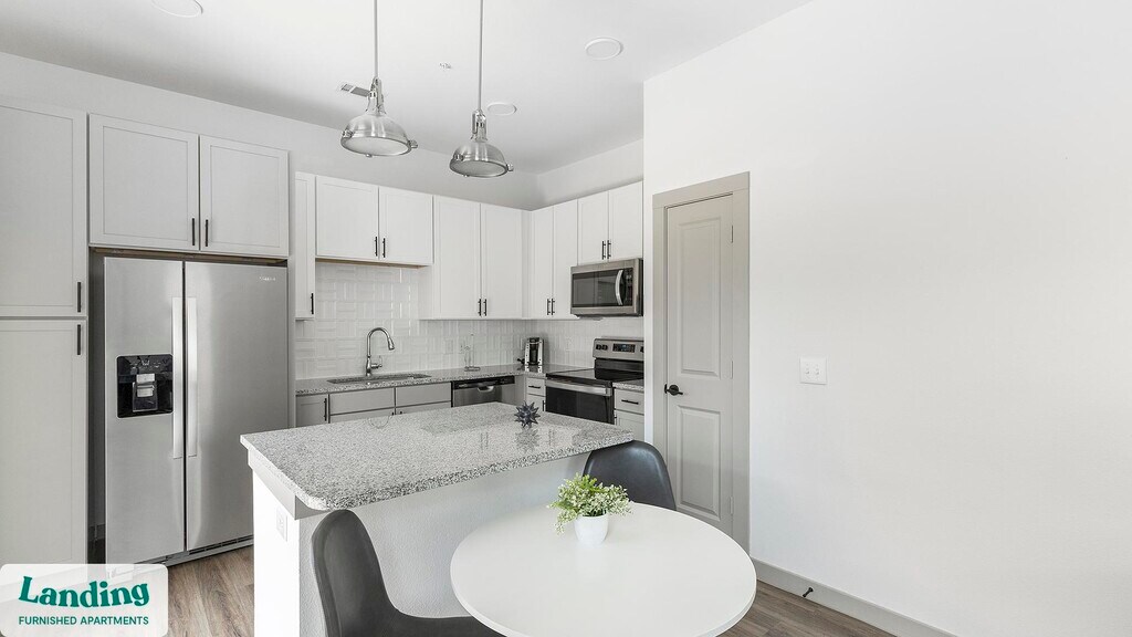 Landing offers flexible lease terms from weeks to months. Please always visit our website or contact us for the latest pricing & availability. Stay longer, save more: 6-Month Minimum base rent: starts at $2837/mo 12-Month Minimum base rent: starts at $2489/mo Landing offers flexible leases across a network of over 35,000 fully-furnished apartments throughout 375+ cities so you can rent on your terms, practically anywhere, and avoid the hassle of paying deposits or application fees. Visit to learn about all the benefits of a Landing membership, see our competitive up-to-date pricing, explore available apartments, take virtual tours, and make reservations online without jumping through traditional rental hoops. Landing's apartments at Skyline Prairie are designed for comfortable, easy living, with the ability to stay as long as you like. Experience living with Landing Every apartment is outfitted with all the modern essentials including: custom-designed furnishings, a fully-equipped kitchen with deluxe stainless steel appliances, a gourmet coffee maker, premium linens, Smart TVs, and incredibly fast, reliable internet for working from home. When you live with Landing, you'll enjoy a hassle-free experience with the added benefit of 24/7 access to our dedicated member experience team. Some of the nitty-gritty: a background check and proof of income are required; we're completely smoke-free; bundled utility packages and pricing vary based on length of stay; pet-friendly options available; listed price reflects a 12-month minimum stay.
