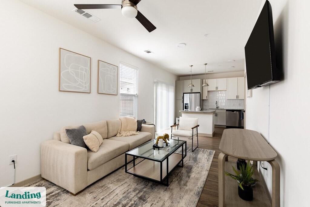Landing offers flexible lease terms from weeks to months. Please always visit our website or contact us for the latest pricing & availability. Stay longer, save more: 6-Month Minimum base rent: starts at $2149/mo 12-Month Minimum base rent: starts at $1779/mo Landing offers flexible leases across a network of over 35,000 fully-furnished apartments throughout 375+ cities so you can rent on your terms, practically anywhere, and avoid the hassle of paying deposits or application fees. Visit to learn about all the benefits of a Landing membership, see our competitive up-to-date pricing, explore available apartments, take virtual tours, and make reservations online without jumping through traditional rental hoops. Landing's apartments at Skyline Prairie are designed for comfortable, easy living, with the ability to stay as long as you like. Experience living with Landing Every apartment is outfitted with all the modern essentials including: custom-designed furnishings, a fully-equipped kitchen with deluxe stainless steel appliances, a gourmet coffee maker, premium linens, Smart TVs, and incredibly fast, reliable internet for working from home. When you live with Landing, you'll enjoy a hassle-free experience with the added benefit of 24/7 access to our dedicated member experience team. Some of the nitty-gritty: a background check and proof of income are required; we're completely smoke-free; bundled utility packages and pricing vary based on length of stay; pet-friendly options available; listed price reflects a 12-month minimum stay.