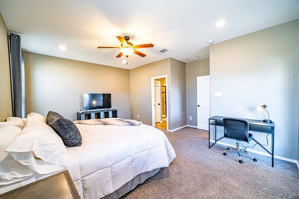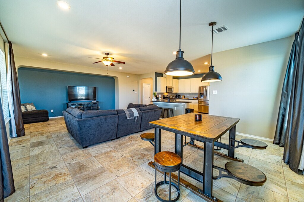 Relocating or working remotely? This spacious home is close to everything in the Greater Austin Area. Whether you are here for a baseball game, conference, concert, Formula One, SXSW, or for work or fun, you are going to love this location. Kalahari and Dell Diamond are minutes away. After you come back from your day, relax by the fire pit or grill up some steaks. Love foosball or kickboxing? This home has you covered there too! There is something for everyone. Must be 25 years or older to book. Rooms are comfortable and ready for your relaxation preference. Two of the bedrooms are in the front near the entrance and the master is at the back of the home. This was a model home so you will enjoy all the upgrades here! The garage has been turned into an athletic and fun zone, so feel free to kickbox, work out, or play foosball. You will have full access to the entire home except the owner's closets, which are located between the bedrooms in the front and in the master bathroom. Enjoy the fenced-in backyard with a fire pit for roasting marshmallows and unwinding after your day. [SI]