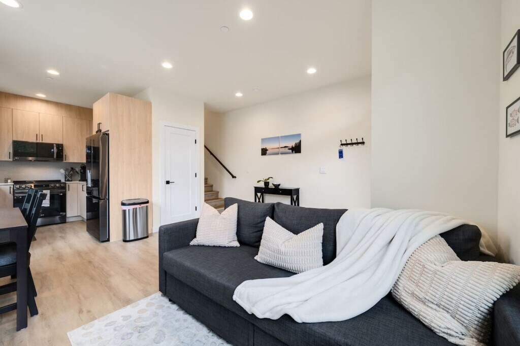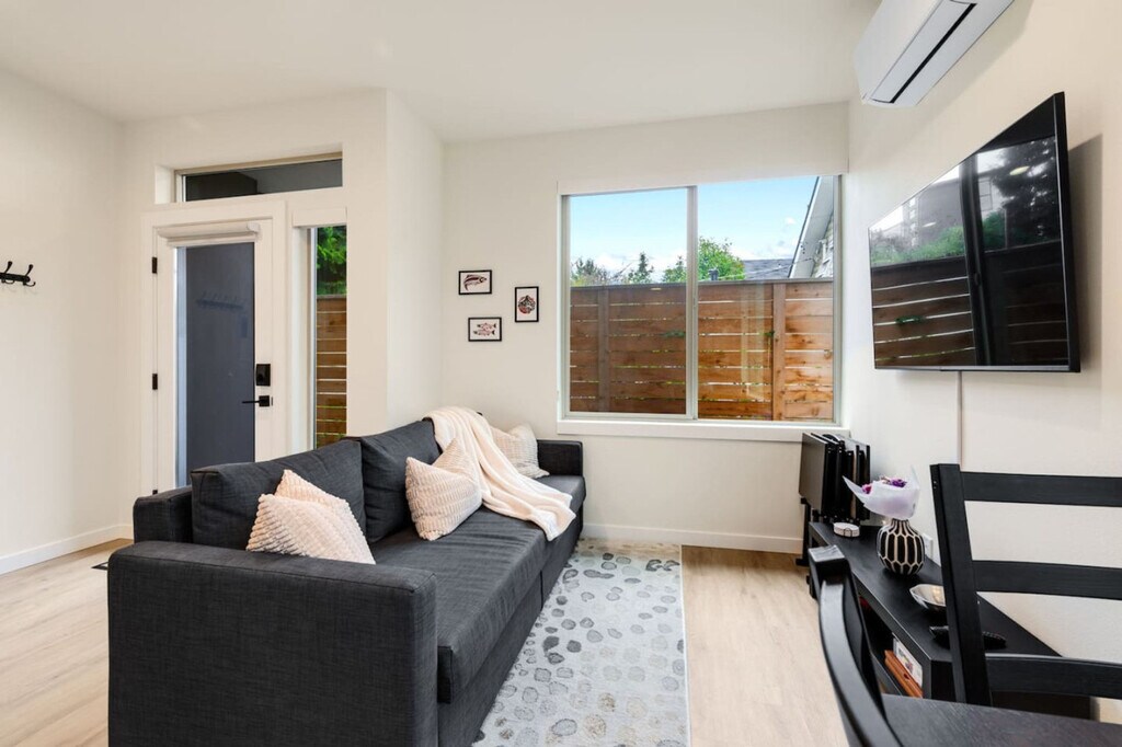 Have an unforgettable Seattle stay in this 3-bedroom, 2-bathroom townhouse located in Roosevelt, a neighborhood a few minutes away from the vibrant downtown area. This four-story home offers plenty of room. With multiple flights of stairs throughout the property, it is ideal for guests comfortable with stair access. The comfortable and convenient open-concept living area allows you to prepare delicious meals in the fully equipped kitchen before sitting down for a fun movie night or relaxing family evening in the living room. Unwind in the welcoming living room while appreciating the unique design, touched by the rays of natural sunlight. The pristine kitchen comes equipped with a range of stainless-steel appliances and spacious countertops, ensuring everything you need is there as you create delightful homemade dishes. The townhouse features three exceptionally comfortable bedrooms with premium pillows, linens, and sheets, as well as two full bathrooms and a convenient half bath stocked with everyday essentials. Amenities include Wi-Fi, a smart TV, board games, air conditioning (living room and master bedroom only), heating, and a washer and dryer. If you arrive by car, the home offers street parking in designated areas and 1 permit pass for overnight parking in certain zones. The townhouse is in the Roosevelt neighborhood, located just north of downtown. This area is considered one of Seattle's hidden gems, offering a perfect blend of urban convenience and laid-back charm, allowing you to experience the true essence of Seattle living. At the heart of the neighborhood is Roosevelt Way, bustling with unique boutiques, trendy eateries, and cozy cafés, making it an ideal spot for food lovers and shoppers. Green Lake Park is a short stroll away for those seeking nature, offering scenic walking trails, paddle boarding, and picturesque picnic spots. With easy access to public transportation, including the light rail, Roosevelt is a great home base for exploring Seattle's major attractions, such as Pike Place Market, the Space Needle, and the University District. Woodland Park Zoo, Washington Park Arboretum, Seattle Art Museum, and the Museum of Pop Culture are all within a short drive. If you are flying in or out of Seattle, the best way would be at Seattle-Tacoma International Airport. Pets are not allowed. There are no parties or events allowed. Please enjoy the outdoor amenities, and adhere to outdoor quiet hours (no music, loud talking, or games) from 10 pm to 7 am daily. You are not permitted to send or receive mail from this address during your stay. If the parking permit is not returned upon check out, a fee of $250 will be charged to cover the cost of a replacement permit. If the guests throws a party or event, trashes the space, damages the unit, disrespects the property, or has extra guests that are not disclosed/reported in the initial booking, the booking party will be charged a deep cleaning fee which maybe between $500 and $700, and a charge for carpet cleaning will also be charged which is dependent on the size of the home. If any smoke debris or smell is identified during or after a guest’s stay, a $250 deep cleaning fee will apply. If a pet is found on the property, a fine of $500 will be charged. Failure to adhere to outdoor quiet hours can result in an additional fine of $100 per incident. If the housekeeping crew finds an unreasonable mess or anything is damaged, an additional cleaning fee of $50 per hour will be charged for each additional hour of cleaning or maintenance required. There will be a $50 fine per guest at the property in excess of the reserved number. We reserve the right to refuse accommodation or demands from rude, disrespectful, and/or discourteous guests, and we will not hesitate to terminate your stay at our discretion if guests continue to demonstrate such a pattern of communication. Registration Number: STR-OPLI-24-002386 [SI]