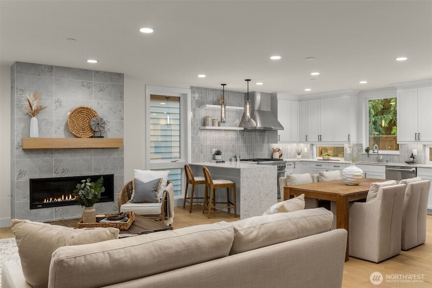 Welcome to Four Roses! Experience luxury living in this new modern rental home. Featuring 3 floors & rooftop deck, this home boasts a chef's kitchen with Thermador appliances, quartz counters, custom cabinetry, & oversized pantry. Kitchen opens to spacious dining & living areas, ideal for entertaining. The 2-car garage leads to the mud & powder rms. Second floor offers 3 bedrooms with walk-in closets, 2 baths, large laundry room & loft. 3rd floor showcases primary suite with heated bathroom floors, steam shower & soaking tub + office or 5th bedroom with lounge area. Enjoy the rooftop deck year-round! Close to 405, Downtown Kirkland, shops, restaurants, & Lake WA Schools!