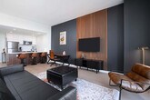 Experience the perfect mix of luxury and convenience in this modern, hotel-style apartment in downtown Hoboken. Just minutes from NYC, this stylish retreat offers breathtaking skyline views, top-tier amenities, and a prime location for exploring both the city and Hoboken’s vibrant scene. Whether you're here for business or leisure, enjoy contemporary design, high-end finishes, and an effortless stay in one of the area’s best spots. Welcome to this inviting apartment in downtown Hoboken, where comfort meets convenience in a stylish setting. With high-end finishes and contemporary decor, this space offers a cozy retreat away from the city's hustle, yet still provides easy access to its vibrant energy. Whip up meals in the fully equipped kitchen featuring stainless steel GE appliances and quartz countertops. Enjoy the tranquility of the neighborhood while being just moments away from fine dining and nightlife hotspots. Take advantage of the free daily shuttles to and from the PATH station for quick and seamless NYC exploration. Inside, relax by the view-filled, floor-to-ceiling windows with unforgettable views of the NYC skyline. Stay active with complimentary access to the two-story fitness center or unwind in the lush amenity terrace and rooftop gardens. Whether you're lounging by the rooftop pool or working in the co-working areas, this apartment offers a comfortable haven in the heart of Hoboken. Secure on-site parking garage is available for hassle-free parking. Electric car charging stations are provided for eco-conscious guests. A pet fee is applicable based on the length of stay, and a fee may be charged for guests traveling with an emotional support animal. The presence of emotional support animals can be declined from stays. Max 2 pets allowed with a combined weight of 40lbs, excluding Pit Bulls and Bull Mastiffs. On-site laundry facilities with commercial washer/dryers are available for your convenience. The apartment is located in downtown Hoboken, offering easy access to both the vibrant local scene and the bustling energy of NYC. Enjoy the convenience of being just moments away from fine dining, nightlife hotspots, and cultural attractions. The free daily shuttles to and from the PATH station make NYC exploration quick and seamless. All properties are smoke-free environments. Smoking is not permitted within or outside of the suites, including balconies, patios, or common and parking areas. Any sign of smoking is a violation of the stay agreement, which may result in immediate termination and recovery fees beginning at $500. Check-in is at 4 PM and check-out is at 10 AM, with a $75/hr late fee. A $200 penalty applies for removing smoke detectors and a $300 penalty for lost key fobs. No outside guests are allowed without permission. One towel is provided per guest per stay. A valid photo ID is required to complete the booking. The apartment includes a dedicated amenity alcove with a chic co-working lounge and individual work stations, making it ideal for remote work. High-speed Wi-Fi up to 500gb ensures seamless connectivity for all your work needs. [SI]