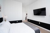 Welcome to this inviting apartment in downtown Hoboken, where modern comfort meets convenience in a stylish setting. Located in a brand-new building packed with amenities, this apartment offers high-end finishes and contemporary decor, providing a cozy retreat away from the city's hustle. Enjoy sweeping views of the Midtown NYC skyline through floor-to-ceiling windows, and feel at home with quick and easy access to NYC and downtown Hoboken. Whip up meals in the fully equipped kitchen featuring stainless steel GE appliances and quartz countertops. Relax by the view-filled windows or stay active with complimentary access to the two-story fitness center. Unwind in the lush amenity terrace and rooftop gardens, or lounge by the rooftop pool. The apartment also offers a comfortable pull-out sofa bed for additional guests. Secure on-site parking garage is available for hassle-free parking, and electric car charging stations are provided for eco-conscious guests. Pet-friendly accommodations are offered with a maximum of two pets (40 lbs combined), excluding certain breeds, and an additional pet fee may apply based on stay length. The apartment also features on-site laundry facilities with commercial washer/dryers for your convenience. With quick and easy access to NYC and downtown Hoboken, you're perfectly positioned to explore all that this bustling area has to offer. Enjoy the tranquility of the neighborhood while being just moments away from fine dining and nightlife hotspots. Take advantage of free daily shuttles to and from the PATH station for seamless NYC exploration. This property is a smoke-free environment, and any sign of smoking is a violation of the stay agreement, which may result in immediate termination and recovery fees beginning at $500. Check-in is at 4 PM and check-out is at 10 AM, with a $75/hr late fee. A $200 penalty applies for removing smoke detectors, and a $300 penalty for lost key fobs. No outside guests are allowed without permission, and a valid photo ID is required to complete the booking. The apartment includes a dedicated amenity alcove with a chic co-working lounge and individual work stations, as well as a convenient conference room for business meetings or events. High-speed Wi-Fi up to 500gb is available to support your remote work needs.