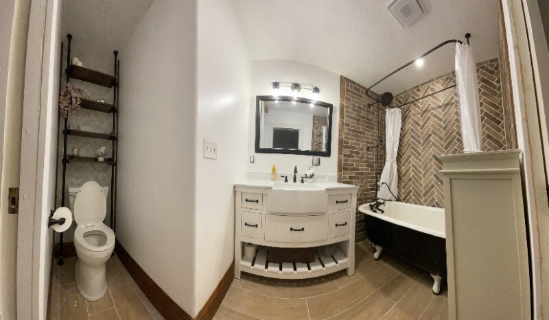 Property Id: 1503555 ****Fully furnished and all utilities, Wifi, security system and yard care provided in rent **** Picturesque, downtown brick ranch style single family home! Back yard is fully fenced and private. Screened in porch, and patio with fire pit. Short stroll to downtown Southern Pines for coffee, dinner, entertainment or shopping. Easy commute to Fort Liberty / Bragg and Camp Mackall. Two bedrooms furnished with queen sized beds, closets and dressers. One bedroom is set up as office. Two bathrooms including rainfall shower and claw foot tub. Short term rental, please contact for further details.