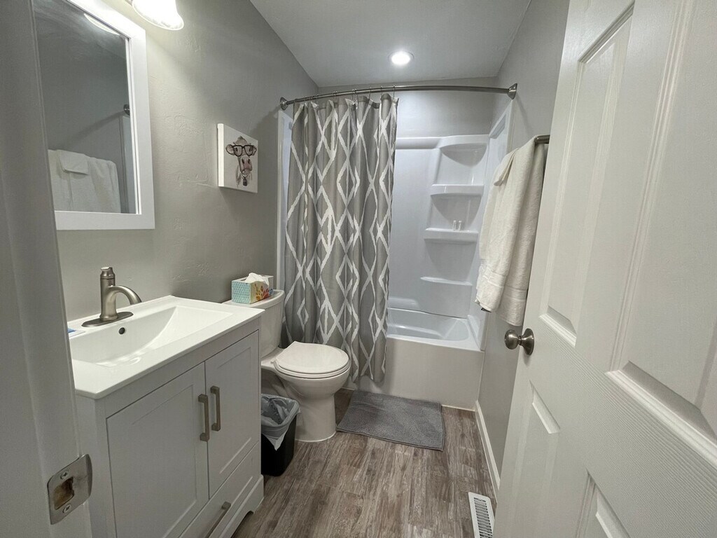 This remodeled apartment on the 1st floor boasts new kitchen cabinets, a modern bathroom, and updated flooring. Enjoy easy access to everything from this central location, with downtown less than 2 miles away and Lambeau Field just a 30-minute drive. Walk to major grocery and retail stores, with I-41 just minutes away. The unit is accessible via three steps. Feel at home with full access to the apartment's amenities, including a cozy living room with a comfortable sofa and a 55" HD Roku TV, a dining nook for intimate gatherings, and a fully equipped kitchen to enjoy meals with loved ones. The apartment offers 100mbps Wi-Fi and free unassigned parking behind the building. Guests are welcome to bring a maximum of two pets, with a charge of $150 per additional or unauthorized pet. Pet owners are responsible for tidying up after their pets, with a $50 fee for additional outdoor cleaning. Free unassigned parking is available behind the building. Explore the neighborhood with ease, as Walgreens is less than a 5-minute walk away. Drive times to popular destinations include Downtown Appleton in 5 minutes, Fox City Performance Arts Center in 3 minutes, and Appleton Airport (ATW) in 15 minutes. For medical professionals, the closest hospital is Appleton Medical Center, just 6 minutes away. Smoking or vaping of any kind inside the unit or garage is prohibited, with an additional cleaning fee of $500 per incident. Quiet hours are observed from 9 PM to 7 AM daily to ensure a peaceful environment for all guests and neighbors. Effortlessly enter the unit via smart lock, with a code provided 24-48 hours prior to your booking date. Please inform us in advance if there will be additional guests so we can provide extra towels if needed. [SI]
