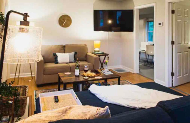 Property Id: 1405617 Furnished 2 bedroom, 1 bathroom cottage conveniently situated between Asheville and Blue Ridge Parkway in Candler, NC. Small dogs allowed with large fenced in backyard with gas firepit. Lot size is over half an acre with views of Mt. Pisgah. Back deck with built in seating. Washer/ dryer, fridge, stove and microwave included. Private, off street parking. Central heat and A/C. Large detached garage with carport included for storage. Rent is $2,000 per month plus utilities, fully furnished. Check out our airbnb listing: