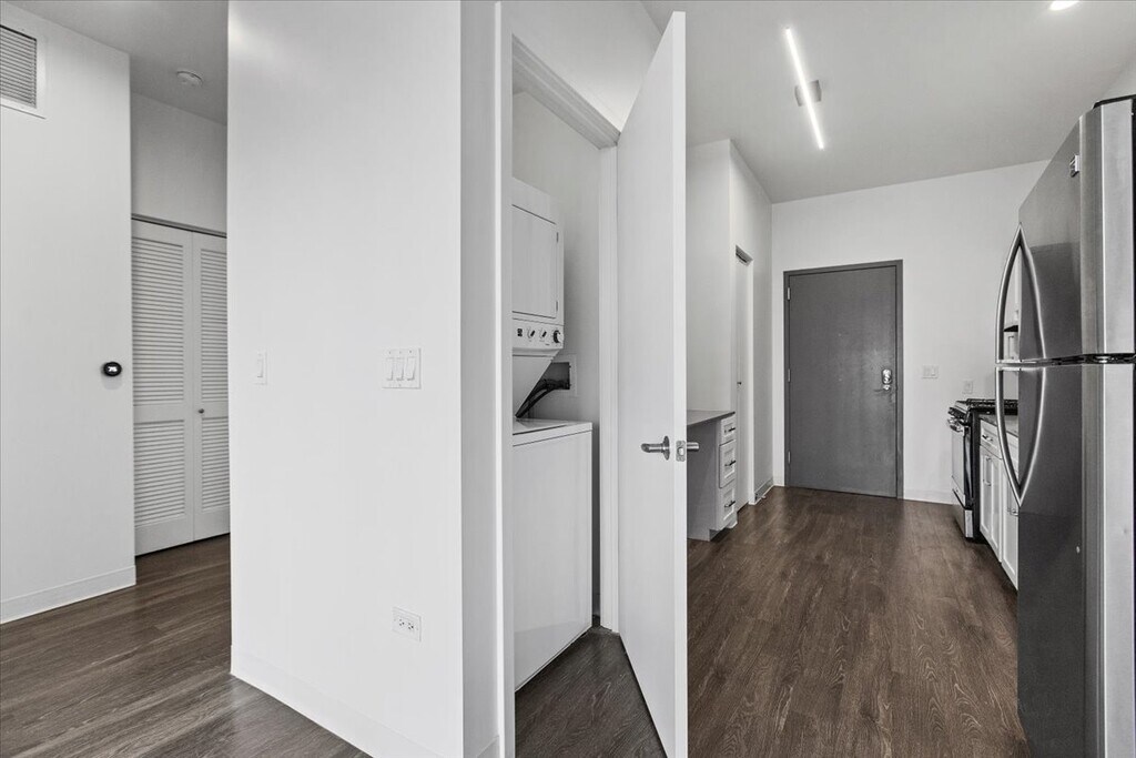 Experience the perfect combination of luxury and convenience in this newly renovated River West apartment, just steps from the Chicago Avenue Blue Line. These beautiful units showcase high-end finishes, including hardwood floors, soaring 9½-foot ceilings, and floor-to-ceiling windows that fill every space with natural light. The kitchens and bathrooms feature sleek quartz countertops and Grohe designer fixtures, while in-unit laundry adds everyday convenience. Pet owners will be happy to know the building is pet-friendly, welcoming both cats and dogs. Enjoy the building’s modern amenities, including a brand-new gym, a rooftop deck with a fire pit and grills, and secure bike storage. Nestled in a vibrant neighborhood, you’re just steps from local coffee shops, CVS, and some of Chicago’s best restaurants and bars. With easy access to Wicker Park, West Town, River North, and nearby expressways, commuting is simple. Parking may be available for a monthly fee. Embrace upscale living in a prime location. Photos shown are of a similar unit.