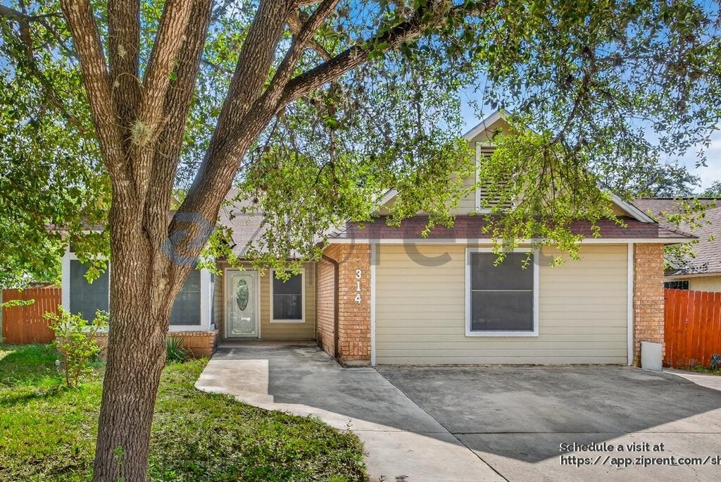 This property is available. Please inquire on this site to schedule a showing. Welcome to 8314 Clays Point, a charming residence nestled in the heart of San Antonio, TX. This delightful home offers a perfect blend of comfort and convenience, featuring a welcoming exterior with mature trees providing ample shade. As you step inside, you'll be greeted by a spacious living area that boasts abundant natural light, accentuated by large windows and a cozy fireplace, making it an ideal space for relaxation and gatherings. The open floor plan seamlessly connects the living room to a well-appointed kitchen, complete with modern appliances, granite countertops, and ample cabinetry, perfect for culinary enthusiasts. The property includes a serene primary suite with a generous closet and en-suite bathroom, offering a private retreat. Additional bedrooms are well-sized, providing flexibility for guests or a home office. Outside, the backyard is a peaceful oasis with a covered patio, perfect for outdoor dining and entertaining. The yard is fully fenced, ensuring privacy and security. Located in a friendly neighborhood, this home is conveniently close to schools, shopping, and dining options, making it a fantastic choice for those seeking a vibrant community with the comforts of home. Available: NOW Heating: ForcedAir Cooling: Central Appliances: Refrigerator, Range Oven, Dishwasher Laundry: Hook-ups Parking: Off Street, 2 spaces Pets: Dogs Allowed, Small Dogs Allowed, Large Dogs Allowed, Cats Allowed, Case by Case Security deposit: $1,499.00 Included Utilities: None Additional Deposit/Pet: $575.00 Disclaimer: Ziprent is acting as the agent for the owner. Information Deemed Reliable but not Guaranteed. All information should be independently verified by renter.