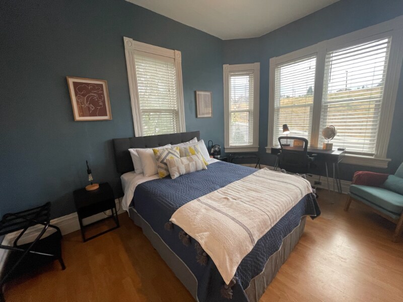 Property Id: 2411238 Enjoy the home on a hill, nestled behind the hedges and directly across the street from the famous Anselmo Headframe. The ten foot ceilings, which were common in the early 1900s, create a spacious feel. The front bedroom boasts a comfortable queen bed, ample closet storage, and desk-space for the working traveler. The second bedroom provides a full bed and built-in drawers for storage. Create a home-cooked meal in our updated kitchen! Please be aware that you will need to walk up a flight of stairs from the sidewalk to the front door. These stairs are steep, have only partial railings, and may be quite difficult for some guests to negotiate. This is especially true for guests with limited mobility or in the harsh Montana winters, when snow and ice often accumulate more rapidly than they can be cleared by our team or the city. Please also note that this is what we lovingly refer to as one of our "crooked houses" an older home that has been lived in for generations, where the walls aren't quite square, the floors will likely creak, and there might even be a drafty old window or two. We've certainly remodeled the property to include many modern upgrades and amenities, and while we always do our very best to make our listings welcoming, clean, and comfortable for all of our guests, we also think it's important to preserve as much of the original character and charm of a property as possible. If you're hoping for a perfectly painted, ultra-modern hotel room, this listing truly is not for you. If you're looking for a home with some character and that still shows evidence of its history, then this might be exactly the spot you've been looking for!