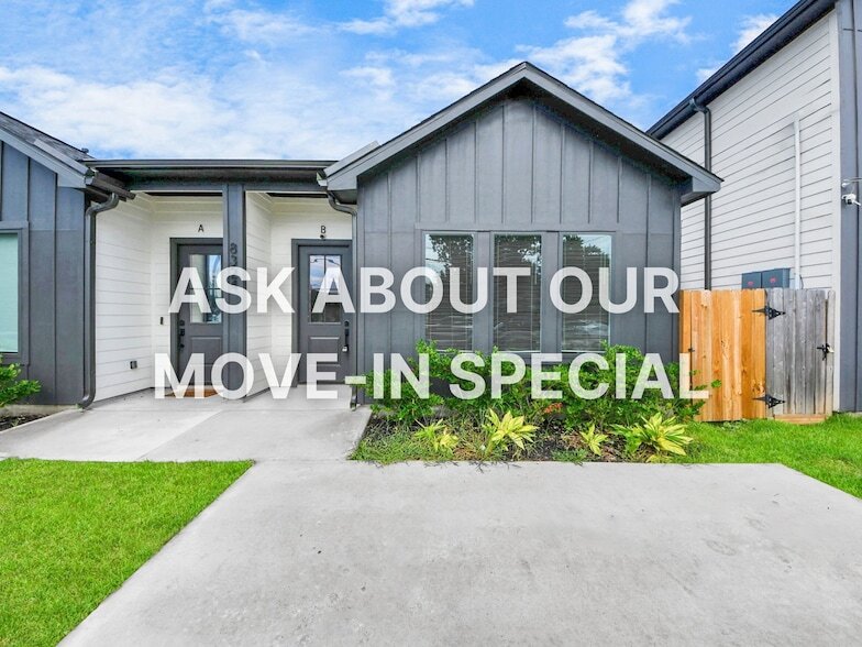 ASK ABOUT OUR MOVE IN SPECIAL!!! Located in Sunnyside, just minutes from the Medical Center, NRG Stadium, Hermann Park, and Downtown this recent construction modern duplex by Brick and Stone stands out with thoughtful design and impressive space. With clean modern finishes and luxury vinyl plank flooring throughout no carpet this home is both stylish and low-maintenance. The open-concept floor plan creates a seamless flow between the kitchen, dining, and living areas, making it perfect for both entertaining and everyday living.The luxurious primary suite offers ample space and an ensuite with dual sinks, an oversized frameless shower, and a walk-in closet. This duplex promises both style and functionality. Available for immediate move-in! Don t miss the opportunity to lease this beautifully designed home in a prime location.