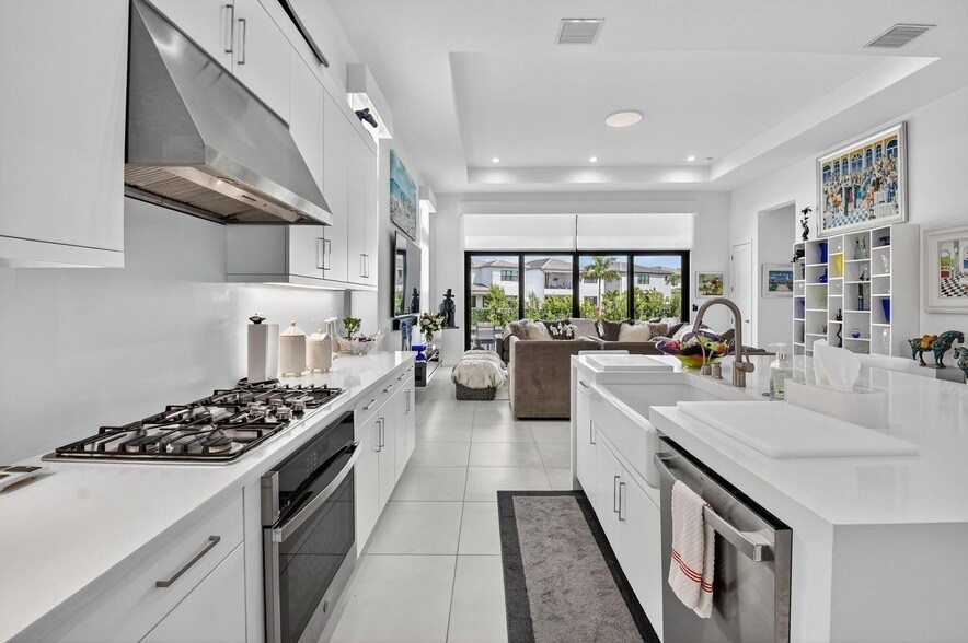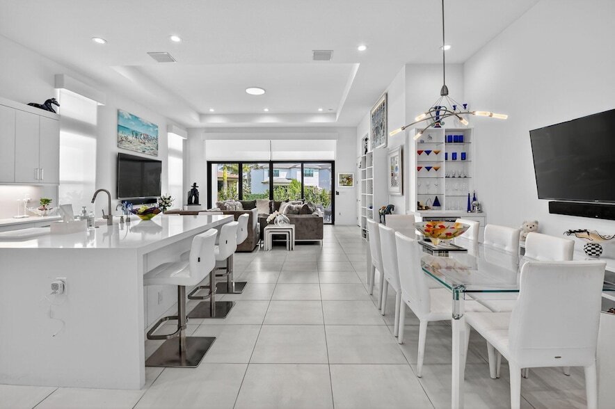 Fully furnished and beautifully decorated one-story home, with 3-bedrooms + office and quiet lake views in Lotus Palm! Barely lived-in Bermuda model complete with designer window treatments, electric shades throughout, and full-house generator. The interior is light, bright, and open. Eat-in kitchen features an extended waterfall island, built-in coffee bar, and stainless steel appliances, including a gas cooktop and double ovens. Master suite has 2 large custom walk-in closets, and a master bath with 2 sinks, large shower, custom stand-alone tub, and touchless commode. All guest bedrooms are ensuite with built-out closets. Outside, the backyard features a pool with spa, entertainment area, and stunning lake views.