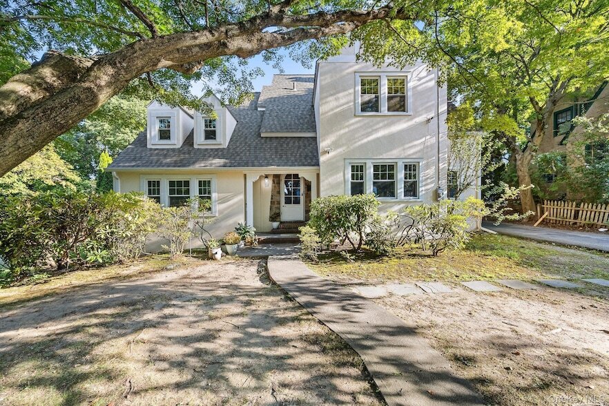 Nestled on a beautifully landscaped third of an acre at College Corner, this mint-condition Tudor seamlessly combines timeless charm with modern updates. The home features a spacious living room with fireplace, formal dining room, sunroom, and an updated open kitchen. Freshly painted throughout with renovated bathrooms and kitchen, it offers four bedrooms, two and a half baths, and a fenced-in yard for privacy. A professional office with a separate entrance can easily serve as a family room/ first floor bedroom, while the detached one-car garage adds convenience. Outdoors, enjoy a custom-built BBQ and expansive stone patio, perfect for entertaining and everyday living. Move right in.