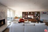 Fully furnished single level 2 bedroom 2 bath condo with panoramic views in prime West Hollywood. Newly renovated open floor plan living with floor to ceiling sliders, hardwood floors and large private balcony. Stone clad fireplace anchors the living room which floods with natural light. Custom kitchen has quartz countertops and stainless steel appliances. Large separate dining space flows effortlessly to the outdoors. Built in bar with a wine fridge doubles as the perfect coffee station. Incredible primary suite with custom walk-in closet system and resort like primary bath. Second bedroom is outfitted as an office with a convertible sleeper sofa to accommodate any guest. South facing unit in a Mid-Century architectural boutique building. Furnishings curated from Soho Home, Jayson Home and Restoration Hardware. 2 parking spaces included. Adjacent to the Residences at the Pendry, steps from the Sunset Strip with easy access to LA's best dining, entertainment and nightlife.