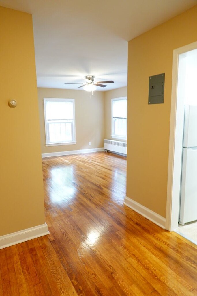 This is a beautiful, recently renovated apartment. The apartment is located at 8406 Greenwood Ave in Takoma Park, MD 20912. It's a small, garden style brick building in a quiet street. There are total of four apartments in the building. The apartment is located on a 1st floor. The apartment has a lot of windows and there is plenty of light in the apartment. The apartment has beautiful newly refinished hardwood floors. There are three large closets in the apartment: living room closet, linen closet and a huge walk-in closet in the bedroom. The apartment has a spacious dining area. There are ceiling fans in the living room and the bedroom. Trash is included in the rent Window unit Air Conditioner is provided free of charge. There are coin-operated laundry facilities available in the lower level of the building. 1.5 mi to the Metro (Takoma), bus stop is around the block. The apartment is located within minutes of walking from shopping, Sligo Creek Parkway, Long Branch Parkway and is on a bus line. Minutes from 495-Beltway and newly developed downtown Silver Spring. 1.5 mi to the Metro (Takoma), bus stop is around the block. We accept pets! (Monthly pet fee applies) REQUIREMENTS: 1-year lease, 1 month security deposit, good credit (650+FICO score needed). Square footage is approximate Max Occupancy 2 persons