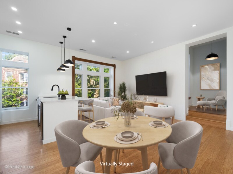 Property Id: 2162984 Welcome to your top floor, renovated home in the heart of West Town. The open concept kitchen features brand new quartz countertops, stainless steel appliances, including a beverage fridge, and eat at peninsula. Enjoy your large living and dining area right off the kitchen or head up to to your reading nook up or office just off the living room. This stunning apartment offers three spacious bedrooms with high ceilings and designer lighting. Both full bathrooms feature new tiled floors, subway tiled shower and stunning vanities. This apartment features central heat and AC, hardwood flooring, and in-unit laundry. Exterior parking space available for additional rent or easy street parking out front. Pets are welcome with ownership approval. Fantastic shopping and dining and easy transit options a half block away from the apartment on Chicago Avenue. Broker owned property. Listing broker is related to owner and a licensed real estate broker in Illinois. Schedule your tour today!