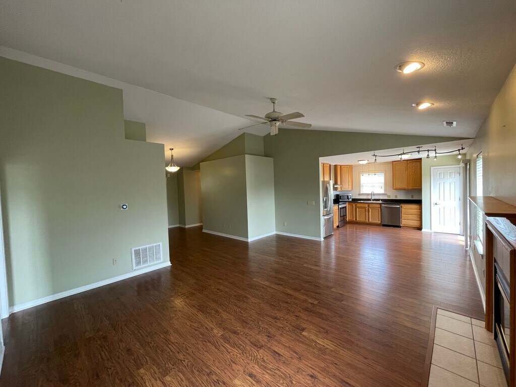 This is a beautifully updated home with modern amenities. Through the front door is the foyer with open floor plan that opens up into the large living room. The split floor plan offers 2 bedrooms and one full bath at the front of the house and the master suite at the opposite end of the house. The living room opens into the eat-in kitchen. The patio doors open to the private back yard. Amenities include stainless steel appliances, laminate flooring, lofted ceiling, utility room and much more. Listed price contingent upon 2 year lease. 1 year lease subject to price change. Please call Capital Property Management at regarding inquires.