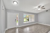Welcome to this beautifully renovated 3-bedroom, 2-bath single-family home with a spacious den/family room and 2-car garage in desirable Royal Palm Beach. Enjoy a bright, open floor plan with vaulted ceilings and brand-new tile flooring throughout. The modern kitchen features new wood cabinetry, quartz countertops, designer lighting, stylish fixtures, stainless-steel appliances, and a large island perfect for entertaining. Both bathrooms have been tastefully updated with modern finishes. Fresh interior and exterior paint complete the move-in-ready feel. Relax or entertain in the private, fully fenced backyard. Conveniently located near shopping, dining, and major roadways. Welcome to this beautifully renovated 3-bedroom, 2-bath single-family home with a spacious den/family room and 2-car garage in desirable Royal Palm Beach. Enjoy a bright, open floor plan with vaulted ceilings and brand-new tile flooring throughout. The modern kitchen features new wood cabinetry, quartz countertops, designer lighting, stylish fixtures, stainless-steel appliances, and a large island perfect for entertaining. Both bathrooms have been tastefully updated with modern finishes. Fresh interior and exterior paint complete the move-in-ready feel. Relax or entertain in the private, fully fenced backyard. Conveniently located near shopping, dining, and major roadways.