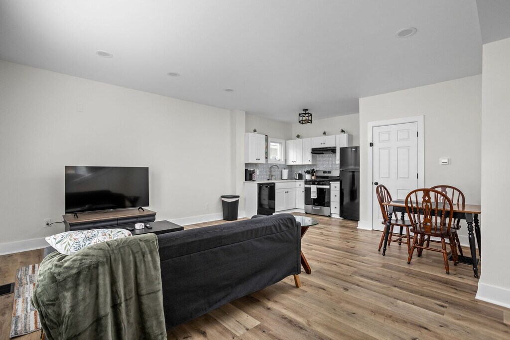 This stylish retreat features two cozy bedrooms and one full bathroom, offering comfort and convenience throughout. The inviting living room is perfect for relaxing, and the fully equipped kitchen makes meals at home easy. Both bedrooms are located upstairs, creating a private and peaceful escape after a day in the city. Make yourself at home in this charming, modern duplex—perfect for a relaxing Indy getaway. The updated kitchen flows into a cozy dining area, great for sharing meals or planning your day. Upstairs, both bedrooms offer a quiet place to recharge, and the sleek bathroom features a refreshing walk-in shower. Thoughtfully furnished and close to top local spots, it’s the ideal home base for your stay. There is a parking space in the back and ample street parking available. Ride share apps typically pick up within minutes. Ransom Place is a charming neighborhood characterized by its beautifully preserved historic homes and tree-lined streets. It's situated just west of downtown Indianapolis, making it conveniently close to the city's cultural and business centers. This neighborhood is known for its strong sense of community and pride in its heritage. Residents enjoy the convenience of living just blocks away from downtown Indianapolis, with easy access to the city's vibrant cultural attractions, dining establishments, and business opportunities. Nearby attractions include the Indianapolis Motor Speedway, Mass Ave, Indianapolis Convention Center, and Lucas Oil Stadium, all within a short drive or walk. This property is equipped with exterior security cameras located at the main entrance. These are motion activated and can be remotely monitored to ensure a secure and comfortable stay. Additionally, there is a Minut sensor inside the home in the main living area that tracks sound levels and smoke detection but does not record audio. Tampering with cameras or sensor will result in additional fees. Early check-in or late check-out may be accommodated upon request. We maintain high cleanliness standards, ensuring the property is carefully cleaned and inspected after every stay. A third-party verification and a signed rental agreement are required for all reservations. Your information is securely handled and deleted upon checkout. Registration Number: SRP-000555