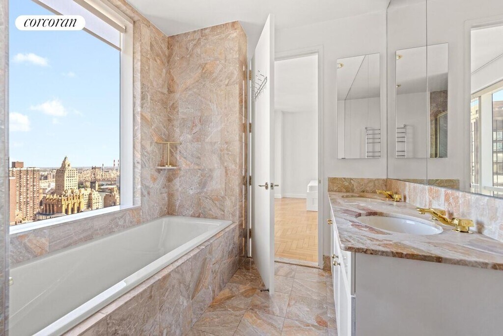 Spectacular 2 bedroom, 2 bathroom residence available for rent on the 38th floor of 845 United Nations Plaza, a premier, white glove condominium in Midtown East's Turtle Bay. This impressive home measures 1,493sf and boasts 10-foot ceilings and floor-to-ceiling windows that frame sweeping views of the Manhattan skyline including the Chrysler Building, Empire State Building, East River, and New York's iconic bridges. The expansive west-facing living and dining room allows for multiple seating areas to create an impressive yet intimate setting to accommodate both daily living and home entertaining. The large, windowed kitchen is beautifully appointed with granite countertops, high-gloss cabinetry, and a suite of full size appliances with generous amounts of storage and counter space and an additional pantry closet. The oversized primary bedroom suite has a bright northern exposure and boasts a 6-piece windowed, en suite marble bathroom with a glass-enclosed shower and separate soaking tub. There are also three large closets. The spacious second bedroom has a corner exposure with open city views to the north and west, along with two points of access. Additional features include a full second bathroom, in-unit washer and dryer, herringbone hardwood floors, and central heat and A/C. 845 United Nations Plaza offers residents an unmatched lifestyle with world-class services and a wide array of amenities including a full-time doorman and concierge services, renovated 10,000 square foot health club and spa with a 60-foot lap pool, spectacular bi-level residents' lounge, private wine cellar, private driveway with valet parking, landscaped garden and courtyard, dog park, updated playroom, package room, and bike storage. Located on 48th Street and 1st Avenue just 2 blocks from the United Nations conveniently located near many fantastic restaurants and shopping. Showing by appointment only. Condominium application required.Sorry no pets allowed. Associated Fees:Condo application fees$20 credit check per person$1000 Processing fee $500 Transaction administration fee$250 Waiver feeFirst month's rent and one month's security deposit are due at lease signing.