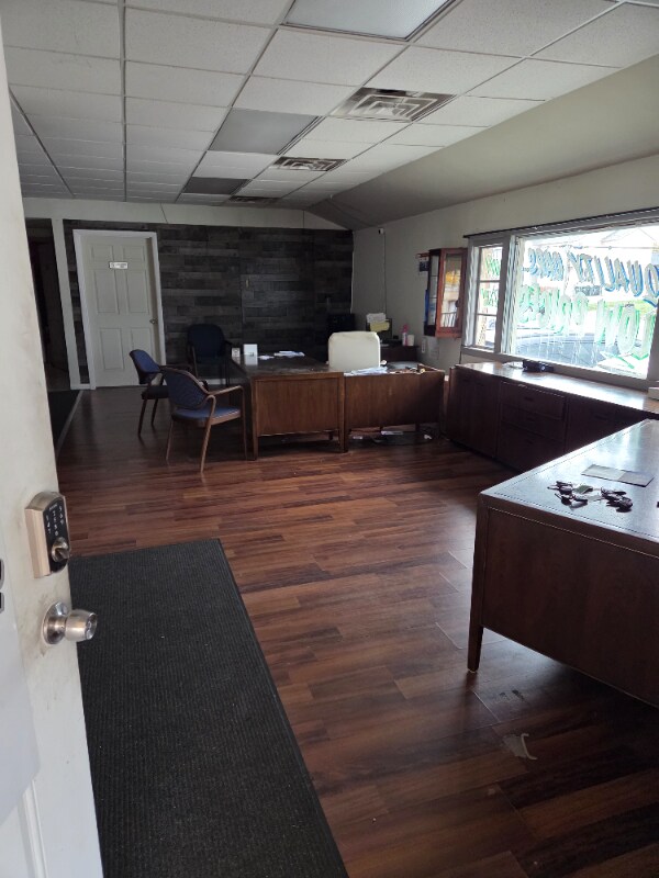 Property Id: 2370295 this listing is for 2 buildings.the first building is a 3000 sq ft. open floor plan and it has a small office in rear along with a bathroom.it has 2 garage doors.the second building has a large office area and 2 offices on each side.and a drive through garage in the rear.