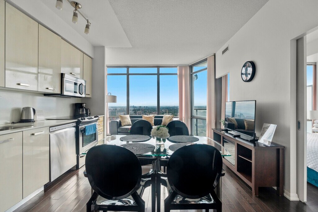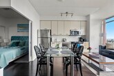 Enjoy a stylish experience at this centrally located 2-bedroom plus den (windowless bedroom), 2-bathroom suite with a balcony and unobstructed downtown view on the 40th floor. This condominium seeks to replicate the feel of the island’s unique and colorful homes. Feel at home in this impressive sculptured glass tower. This suite has everything you need to feel at home, including a fully functional kitchen with tea, coffee, a kettle, coffeemaker, and toaster, as well as a washer and dryer. The bathroom is equipped with towels, shampoo, conditioner, body wash, a hair dryer, and other toiletries. Please note that only the main bedroom has windows; the other two do not. Underground parking with in/out privileges is available upon request for an additional fee of $25 per night. It's recommended to request it in advance as spaces may be limited. In case of no availability, there is paid underground parking 100 meters from the building at 27 Grosvenor St. for $30 per 24 hours on weekdays and $16 on weekends. Pets are allowed with a fee of $20 per night for 1 pet. A travel crib (for baby 0-18 months) and bed rails are available for $10 per item per night; please book in advance. Inspired by the art and architecture of the Venetian island of Burano in Italy, this centrally located condominium rises out of the historical Addison on Bay. Guests whose names or ID do not match the information given are not allowed into the building. Registration Number: STR-2507-HBHSBW [SI]