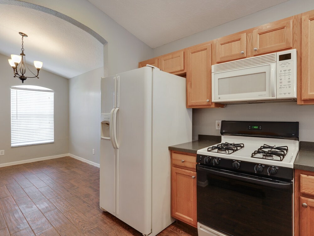 Please note, our homes are available on a first-come, first-serve basis and are not reserved until the holding fee agreement is signed and the holding fee is paid by the primary applicant. This home features Progress Smart Home - Progress Residential's smart home app, which allows you to control the home securely from any of your devices. Learn more at This home is priced to rent and won't be around for long. Apply now, while we make this home ready for you, or call to arrange a meeting with your local Progress Residential leasing specialist today. Immaculate 3 bedroom, 2 bathroom rental home in Trinity, FL! You will love the vaulted family room, which is open to the eat-in kitchen. The kitchen boasts wood laminate flooring, a dining area and a breakfast bar. All three bedrooms offer great natural light and the master retreat boasts a private en suite. The covered patio overlooks the grassy backyard, and is the ideal place to enjoy a morning cup of coffee! Schedule your tour and apply online at