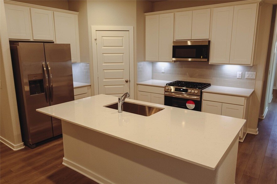 Welcome Home to Lakes at Black Oak! This brand new never lived in Davidson Homes San Marcos floorplan is a stunning 5-bedroom, 3-bathroom gem, boasting 2,542 sq. ft. that is designed for comfort and style. Features include a spacious two-car garage and a thoughtfully crafted open-concept living area on the main floor. The inviting kitchen shines with white cabinets, granite countertops, and a chic subway tile backsplash. The main floor hosts the serene owner's suite, complete with a garden tub shower combo, alongside a guest room and bath. Venture upstairs to discover three more generous bedrooms, a bathroom, and a versatile loft space perfect for your lifestyle. Enjoy modern conveniences like on demand water heater and a full irrigation system. All appliances are included. Located in the Magnolia Independent School District, this community offers a splash pad, playground, and more.