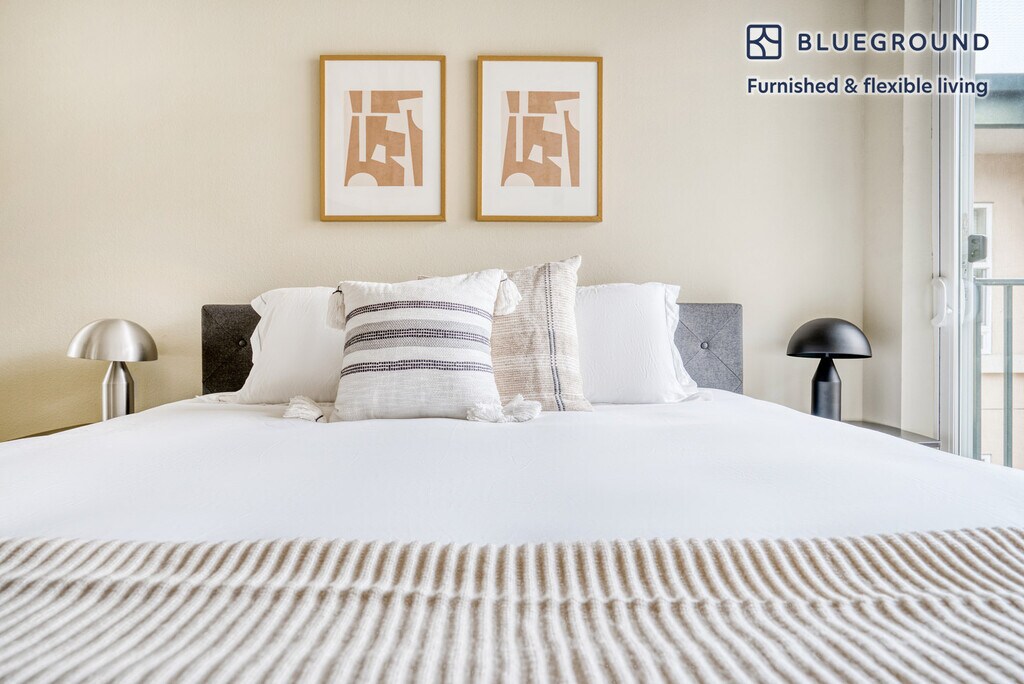 Feel at home wherever you choose to live with Blueground. You’ll love this cozy San Bruno furnished one bedroom apartment with its modern decor, fully equipped kitchen, and bright living room. Ideally located, you’re close to all the best that San Bruno has to offer! (ID #SFO988) The advertised rate of $3,430/month is the lowest available price, based on a 12 month(s) stay with a move-in date of June 2, 2026. Rates vary depending on the duration of stay, season, and other parameters. For exact pricing and additional pricing components, please visit our website and enter your desired move-in and move-out dates. The rate is applicable when billed upfront; it can be higher if billed in multiple payments. Brokers are welcome to reach out. Were you looking for an unfurnished lease? Try Blueground instead and upgrade from unfurnished to furnished living: - Furnished at rates comparable to unfurnished - No setup or furniture costs - save thousands - Move-in ready - save time, just bring your suitcase Designed with you in mind Thoughtfully designed with bespoke finishes, modern furnishings, and a fully equipped kitchen, you’ll enjoy that “I’m home” feeling with this Blueground apartment. Whether you’re lounging in your beautiful living room streaming the latest and greatest entertainment on the smart TV or premium wireless speaker, or getting some well-earned rest on the superior quality mattress with luxury linens, you’ll fall in love with everything this San Bruno apartment has to offer. This apartment also offers in-apartment laundry. Sleeping arrangements King Bed, 70.8in/180cm Amenities Building amenities unique to this one bedroom apartment include an on-site: - BBQ Area - Dryer - Elevator - Swimming pool - Washing machine - Lounge - Media room - Parking - Pets allowed Arrival and ongoing support The entire apartment is yours to enjoy! Throughout your stay, you’ll have access to our Client Experience team through the Blueground App. You can schedule additional cleanings, submit maintenance requests, and view our neighborhood recommendations with just a few taps. We’ll share all details upon confirmation of your stay. Ideally Located This furnished apartment is located in San Bruno in San Mateo County near San Francisco International Airport. This dynamic city is set within Silicon Valley and is home to YouTube's headquarters. There are plenty of bars, shops, and restaurants right in San Bruno, and San Francisco is just a short distance away. 100-acre Junipero Serra County Park in San Bruno is the perfect place to go hiking on the weekend or meet up with friends for a barbecue or picnic. Most residents rely on their cars to get around, but San Bruno also has its own BART station for easy access to San Francisco and the rest of Silicon Valley. Other things to note Building amenities may have an extra cost. This Blueground apartment has flexible lease options, allowing you to book it for one month, a year, or more. Pets are welcome, though weight limits and breed restrictions apply and may incur fees. Parking is offered based on availability and is subject to a fee. We take great pride in ensuring every photo displayed is shot in our own units with our actual furnishings. That said, we regularly refresh our decor and furniture arrangement, which may differ from what’s pictured.