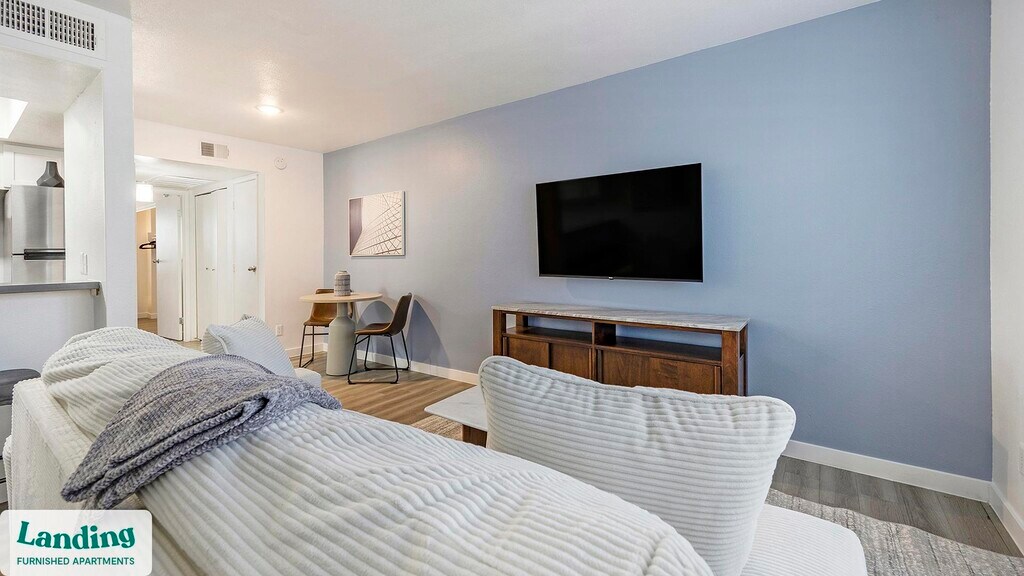 Landing offers flexible lease terms from weeks to months. Please always visit our website or contact us for the latest pricing & availability. Stay longer, save more: 6-Month Minimum base rent: starts at $1500/mo 12-Month Minimum base rent: starts at $1309/mo Landing offers flexible leases across a network of over 35,000 fully-furnished apartments throughout 375+ cities so you can rent on your terms, practically anywhere, and avoid the hassle of paying deposits or application fees. Visit to learn about all the benefits of a Landing membership, see our competitive up-to-date pricing, explore available apartments, take virtual tours, and make reservations online without jumping through traditional rental hoops. Landing's apartments at Celeste Glendale are designed for comfortable, easy living, with the ability to stay as long as you like. Experience living with Landing Every apartment is outfitted with all the modern essentials including: custom-designed furnishings, a fully-equipped kitchen with deluxe stainless steel appliances, a gourmet coffee maker, premium linens, Smart TVs, and incredibly fast, reliable internet for working from home. When you live with Landing, you'll enjoy a hassle-free experience with the added benefit of 24/7 access to our dedicated member experience team. Some of the nitty-gritty: a background check and proof of income are required; we're completely smoke-free; bundled utility packages and pricing vary based on length of stay; pet-friendly options available; listed price reflects a 12-month minimum stay.