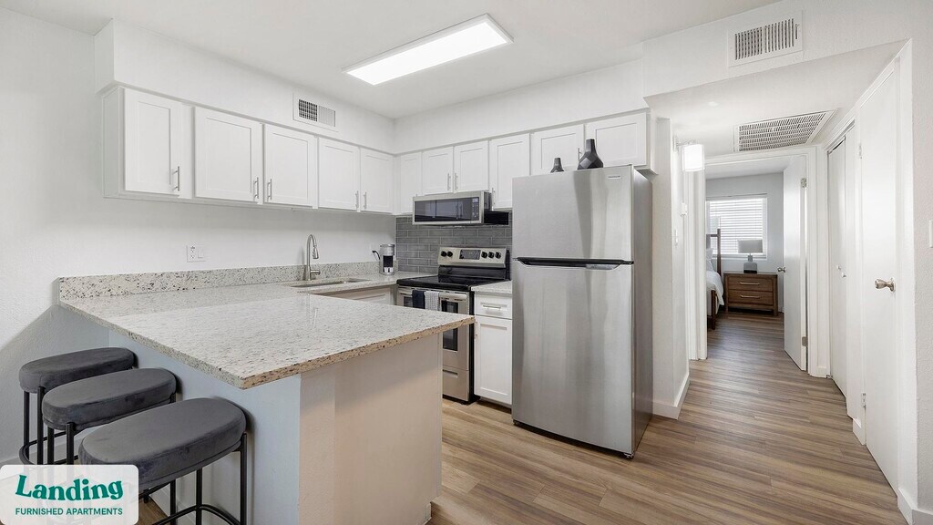 Landing is a top-rated, fully furnished apartment network with thousands of homes across 250+ U.S. cities. With premium amenities, a mobile app to manage your stay, and 24/7 support. Our apartments have everything you need for monthly and longer stays. 6-Month+ Stay base rent: starts at $1475/mo 12-Month+ Stay base rent: starts at $1475/mo Landing's apartments at Celeste Glendale are designed for comfortable, easy living, with the ability to stay as long as you like. All Landing apartments include: - Fast Wi-Fi - Stylish furnishings - Fully-stocked bathroom - Smart TVs - Comfortable bed - Professionally cleaned - Guest support Stay longer for cheaper! The longer you stay, the bigger your discount. Price advertised is for a 12-month stay, including all utilities and fees, and may vary based on availability. We manage multiple units at this property. While all feature a similar style and furnishings, the layout and specific design elements may vary slightly from the photos provided. Some of the nitty-gritty: a background check and proof of income are required; we're completely smoke-free; pet-friendly options are available; parking is subject to availability.