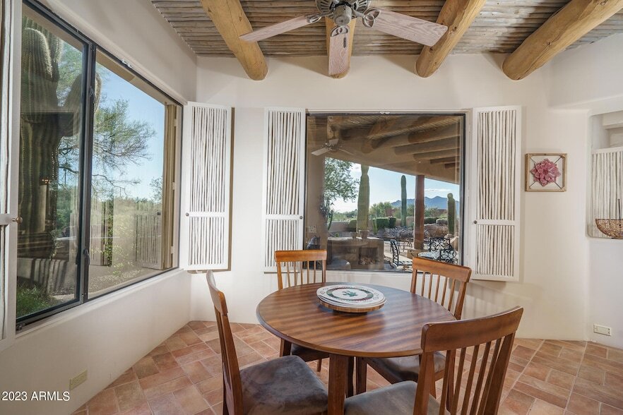 Discover the epitome of southwestern luxury in this private vacation rental home nestled on 1.5 acres in Carefree, AZ. Boasting 3 bedrooms and 3 bathrooms, this masterpiece offers a serene backyard adorned with beautiful desert plants and a breathtaking view of the desert and stunning mountains. Immerse yourself in relaxation with a pool and spa, while evenings become divine under the covered patio with a cozy fireplace adjacent to the dining area. The kitchen is a chef's gourmet dream, catering to culinary enthusiasts. Unwind from a day of exploring Carefree in the cozy family room with a fireplace. The primary retreat is a haven featuring a beehive fireplace and a resort-style bath. Equally luxurious are the two guest suites, one with a balcony and a private entry/exit stairway. The loft with an observation deck provides a stunning panorama of the surrounding desert and wash. Enjoy watching the Sunrise/Sunsets from this unbeatable view! This home is gorgeous!Carefree is a year-round vacation spot, that beckons exploration. Visit the iconic Carefree Sundial and revel in the Western lifestyle of the nearby Town of Cave Creek. Horseback riding tours, Cave Creek Regional Park's scenic trails, and delightful dining experiences await. Explore the rich history at Cave Creek's Historic Spur Cross Ranch, a popular conservation area with fascinating archaeological sites. Only 15 miles away, the Kierland/Scottsdale Quarter offers upscale shopping and entertainment. For golf enthusiasts, top-rated golf courses all around, and the close proximity to Cave Creek Regional Park's 2,922-acre desert opens doors to multi-use trails and picturesque picnic spots. This vacation rental is your gateway to an amazing opportunity to explore all that Arizona has to offer. Experience luxury, tranquility, and adventure in the heart of Carefree.