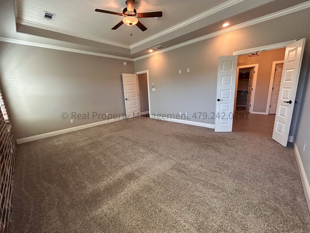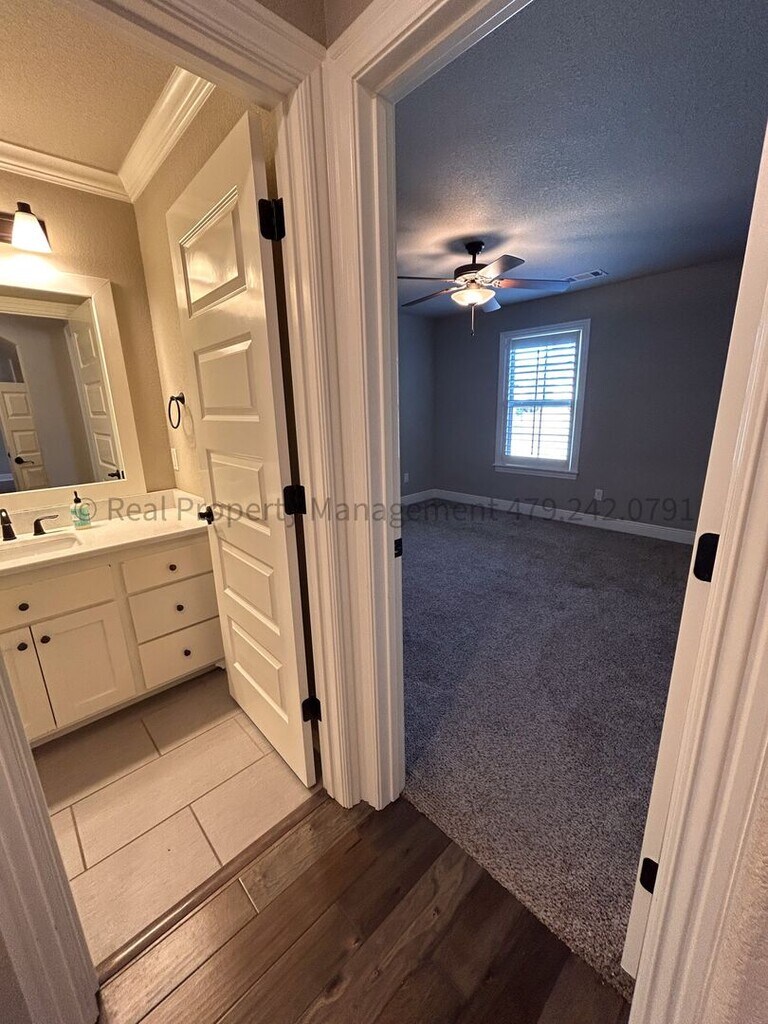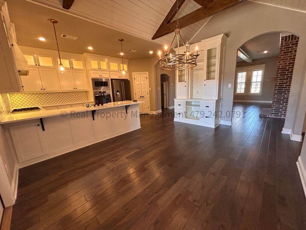 THIS HOUSE IS OCCUPIED UNTIL NOVEMBER 30TH. DO NOT DISTURB OCCUPANTS. PROFESSIONALLY MANAGED BY REAL PROPERTY MANAGEMENT - 8606 Gatehouse Way, FSM Introducing a stunning 4 bedroom, 3 bathroom executive home in the Stoneshire Subdivision, located near Lake Torraine in Fort Smith, AR (Chaffee Crossing Area). This spacious home boasts a range of amenities including a refrigerator, garbage disposal, dishwasher, microwave, gas cook top, and wall oven making cooking a breeze. Enjoy cozy evenings in the living room by the gas fireplace or entertain guests on the covered back patio with a privacy fenced yard with a built in outdoor gas fireplace! The central heating & air system ensures year-round comfort. Stunning wood beam accent ceilings in the dining room and master bathroom. Extra large closets in every bedroom, and a large pantry, this home offers plenty of storage space. Split floor plan downstairs. Master bedroom on one side, 2 bedrooms and a hall bath (tub/shower combo) on the other side. Master bathroom has a jacuzzi tub and a walk in shower. Upstairs has one bedroom with private bathroom that has a step in shower. The 2 car oversized garage provides ample parking and storage space. Don't miss out on the opportunity to make this beautiful house your new home. Tenant pays water, electric, and gas. Tenant is responsible for all lawn care/landscaping. Pet friendly (2 pet limit. Some dog breeds are restricted.) NO HUD. Rent : $2600 Deposit: $2600 ($300 Leasing Fee included in this amount, leasing fee non-refundable) Application Fee: $65 (Each occupant 18 and older must submit a separate application. Background checks include credit and criminal history. Application fees are non-refundable) Pets are welcome with fees & restrictions. Resident Benefit Package: $25.00 fee includes utility concierge service, on-time rent payment credit reporting, home buyers assistance, & more! (Charged per household, not per tenant) Pet Screening: We use a third-party service, to ensure all applicants understand how to adhere to the property's pet and animal policies, even if you do not have a pet or animal. All applicants should complete a "Pet", "No Pet", or "Assistance Animal" Profile. Please get started with this mandatory information by selecting a profile category on our landing page: RPM pet fees: $250 non-refundable deposit for pet 1. $150 non-refundable deposit for pet 2. $35/month pet rent per pet. (Restricted Dog Breeds: German Shepherd, Doberman, Chow-Chow, Rottweilers, Pit Bull or any Bully breed, or any mix of restricted breeds.) Insurance Requirement: Liability to Landlord Insurance in the amount of $100,000 is required. You can obtain this through most private Renters Insurance Policies with your personal insurance company, or we have an option for (1.) FolioGuard Renters Insurance which covers your personal belongings AND the required liability to landlord insurance, or (2.) Just the Liability to Landlord Insurance, which does NOT cover your personal belongings - only accidental tenant damage to the property, for an additional $15.00 a month (no proration).