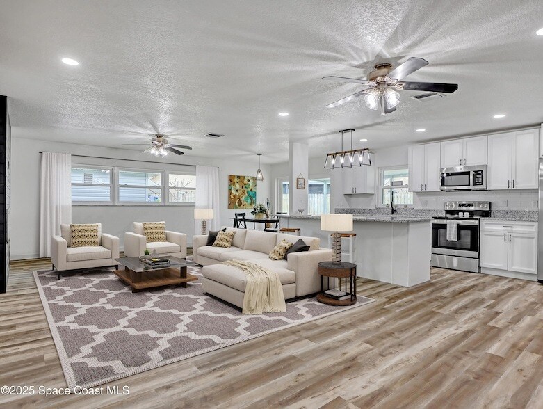 Well maintained home with tons of updates. New IMPACT windows, roof, updated bathrooms, electrical panel, and the list goes on! Oversized corner lot w/ city water & sewer, NO HOA & room to park a boat or trailer. From the moment you enter, you're greeted by a spacious open concept flooded with natural light, luxurious vinyl plank flooring, creating a seamless flow from room to room. The heart of the home, the kitchen, is a true masterpiece, featuring a stunning granite island that serves as the focal point, surrounded by brand-new stainless-steel appliances and sleek, contemporary finishes. Whether you're preparing a gourmet meal or enjoying a casual breakfast at the island, this kitchen is as functional as it is beautiful. Adjacent to the kitchen is the flex space ideal for a game room, office or lively gatherings as a huge family room. Explore the nearby parks, boat launch, kayak launch & more.