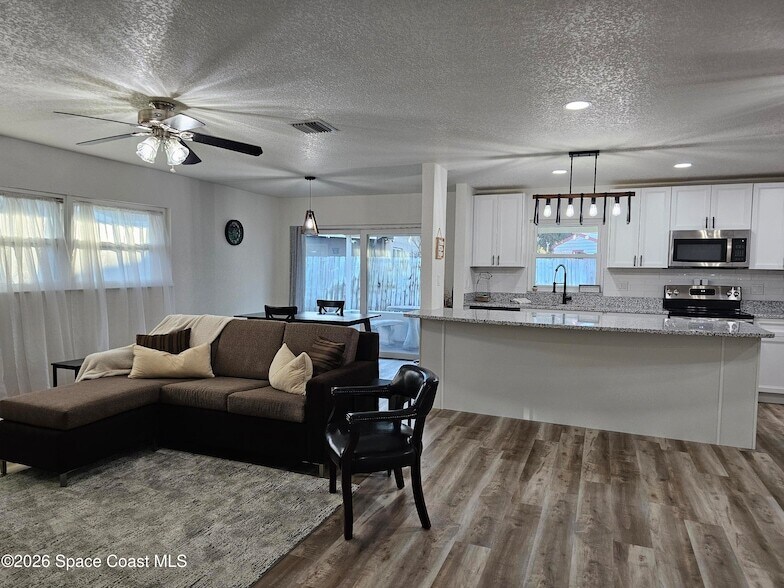 Loaded with upgrades! This beautifully updated home features new IMPACT windows, a NEW roof, updated bathrooms, electrical panel, and much more. Situated on an oversized corner lot with city water, sewer and NO HOA. This property offers both comfort and freedom. Step inside to a bright, open-concept layout filled with natural light and enhanced by luxurious vinyl plank flooring that flows seamlessly throughout. The heart of the home the show-stopping kitchen boasts a stunning granite island, new stainless-steel appliances, and sleek, contemporary finishes, making it perfect for both everyday living and entertaining. Just off the kitchen, a versatile flex space can easily serve as a game room, home office, or expansive family room ideal for lively gatherings. Enjoy an active lifestyle or leisure walks with nearby parks, boat and kayak launches, and outdoor recreation just minutes away. Seller financing may be considered.
