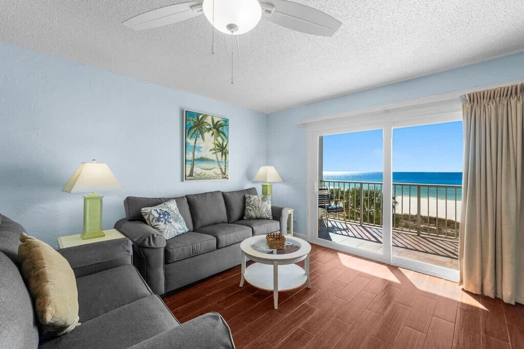 The advertised rate of $2,630/month is the lowest available price, based on a 30 day(s) stay with a move-in date of March 7, 2026. Rates vary depending on the duration of stay, season, and other parameters. For exact pricing and additional pricing components, please visit our website and enter your desired move-in and move-out dates. The rate is applicable when billed upfront; it can be higher if billed in multiple payments. Feel at home in this gorgeously decorated beachside condo, offering 1-bedroom and 1.5 baths. This condo is the complete package for comfort and relaxation, with access to a private balcony offering breathtaking views of the Emerald Coast and sugar white sand beach. This property sleeps 5. This condo features a fully equipped kitchen to cook your favorite home-cooked meals and free Wi-Fi. A washer and dryer are included for your convenience. Chill by the pool, read your favorite novel, or stroll down to the beach and enjoy the 2 beach chairs and umbrella included in this rental. Within walking distance to many great restaurants, shops, and attractions, you'll surely find something to do for everyone. You can enjoy some of the best ice cream Panama City offers at Kilwin's in Pier Park or head on down to Gulf World Marine Park to feed sharks and learn about sea life. With such a convenient location, everything you'll need is nearby. The property is undergoing a balcony restoration project from September 2025 to January 2026. Dates are subject to change based on weather and progress. Balconies will be closed during this time, furniture may be stored inside, and guests should expect noise and dust. Please verify if you will have access to your balcony during your stay, as no refunds, discounts, or relocations will be provided. The indoor hot tub is closed for renovation until further notice as of January 2026. Quiet hours are between 11 PM and 7 AM. Per PCB Ordinance 1632, the maximum occupancy is 5 guests, including children and infants. Failure to abide by the ordinance may result in fines and ejection. The minimum age to book is 18. Check-in is at 4 PM CT (5 PM Spring Break and Major Holidays). [SI]