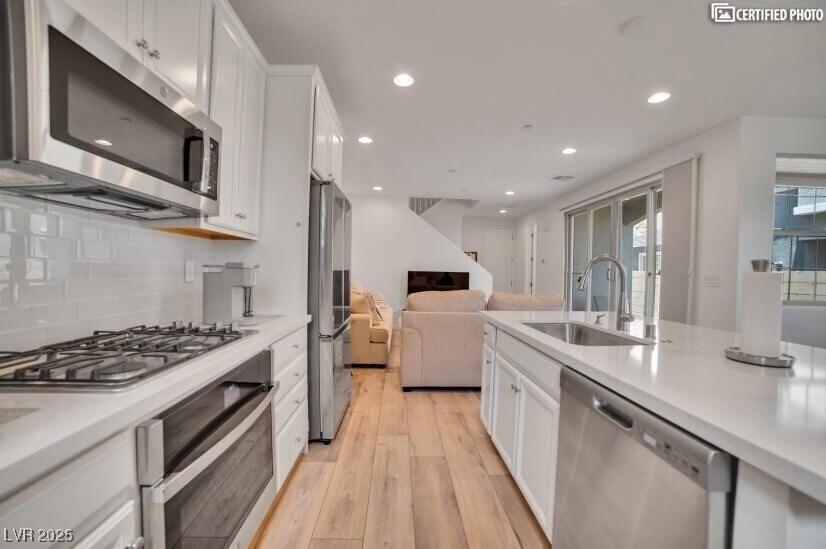 EXQUISITE FULLY FURNISHED TOWNHOUSE NESTLED IN THE PRESTIGIOUS LAKE LAS VEGAS* STEP INTO TO MAIN LEVEL W/FULLY ADORNED 9 CEILINGS, VINYL WOOD FLOORING, POWDER ROOM, AND SEAMLESSLY FLOWING OPEN LIVING AND DINING AREA* THE KITCHEN SHOWCASES CRISP WHITE CABINETS, QUARTZ COUNTERTOPS, STYLISH TILE BACKSPLASH, AN ISLAND, AND BLACK SLATE APPLIANCES* UPSTAIRS, A LAUNDRY ROOM W/ WASHER AND DRYER, 2 STANDARD BED, PRIMARY SUITE W/ PRIVATE BATHROOM AND W/IN CLOSET* 2 CAR GARAGE W/ 2 ELECTRIC CHARGERS, AND TANKLESS WATER HEATER* CLOSE TO WATER SPORTS, FINE DINING, AND OUTDOOR CONCERTS!*