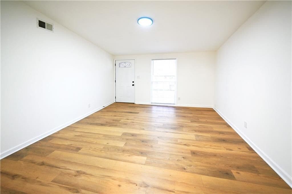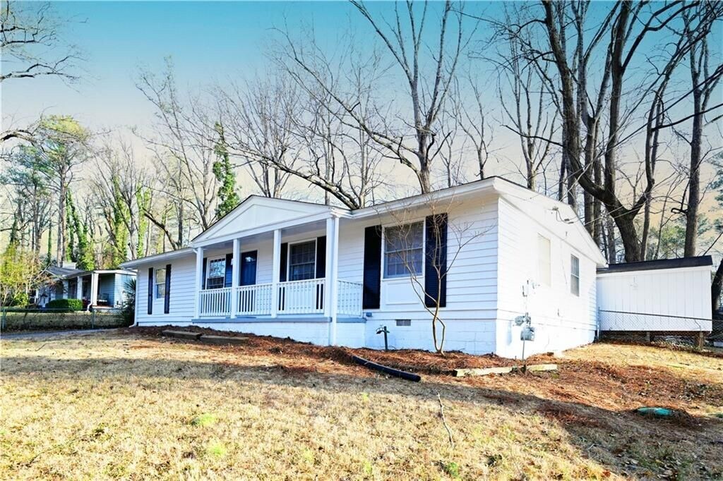 Beautiful and spacious 4 bedroom 2.5 bathroom ranch with front porch, completely renovated inside and out in central Smyrna location. New LVP flooring throughout the living room, dining room, bedrooms and bathrooms. Spacious kitchen with tons of cabinets, walk-in pantry, brand new stainless appliances, new granite counters, stylish backsplash, new lighting and tile flooring. Brand new washer and dryer. Large master bedroom with completely renovated master bathroom with double vanity, granite counter, new sinks, new hardware, new lighting and new shower with tile surround. Three additional spacious bedrooms with an additional completely renovated bathroom. Fully renovated half bath for guests. Private low-maintenance fenced backyard with multiple patios and huge shed. Close to schools, grocery stores, restaurants, shopping, movies, entertainment, highways, parks, trails and within a short drive to most of Atlanta.