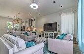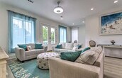 This 3-bedroom coastal home in Santa Rosa Beach, FL, offers everything you need for an amazing vacation. Located just 0.7 miles from the beach, this 3-level home accommodates up to 12 guests and features a wet bar, upper patio with a projector, BBQ grill, outdoor shower, fire pit, and ample parking for up to 5 vehicles. Feel at home in this family-friendly retreat designed for comfort and convenience. Welcome to your coastal escape in Santa Rosa Beach! This beautifully designed home features 3 bedrooms and 2.5 bathrooms, accommodating up to 12 guests. Enjoy breathtaking sunsets and stargazing from the rooftop patio, complete with a projector for outdoor movie nights. The private fenced backyard offers a grill, outdoor shower, and plenty of space for relaxation. The chef’s kitchen is fully stocked with high-end stainless appliances, a large refrigerator, ample cabinetry, and a large island with high seating. Each bedroom is equipped with a TV, and the living room boasts an 80” smart TV and a large plush sleeper sofa. The property offers ample parking for up to 5 vehicles. Although pets are not allowed, the home is family-friendly with a kid-friendly set-up perfect for making lifelong memories. Explore the vibrant neighborhood with ease, as 8 bicycles are available for your use. Ride to local coffee shops, wood-fired pizza spots, ice cream parlors, and restaurants, all within walking distance. Nearby attractions include Topsail Hill Preserve State Park, Grayton Beach State Park, Deer Lake State Park, and Eden Gardens State Park. The Timpoochee Trail offers a scenic biking and walking path along 30A. Enjoy water sports and coastal adventures, or take a short drive to Destin for dolphin cruises and boat tours. Check-in is at 4pm and check-out is at 10am. No pets or parties are allowed, and violations may result in immediate termination of the stay. An exterior camera is installed solely to monitor the cleaning team for quality and security purposes. Guests must be 21 years or older to book this property. A guest verification process is required within 48 hours of booking confirmation, including signing a rental agreement and providing a valid ID and matching credit card. A non-refundable $60 damage waiver is required, covering accidental damage during your stay if reported prior to check-out. A desk with a chair and mirror is available in one of the bedrooms, providing a comfortable space for remote work. Wi-Fi is included, ensuring you stay connected during your stay.