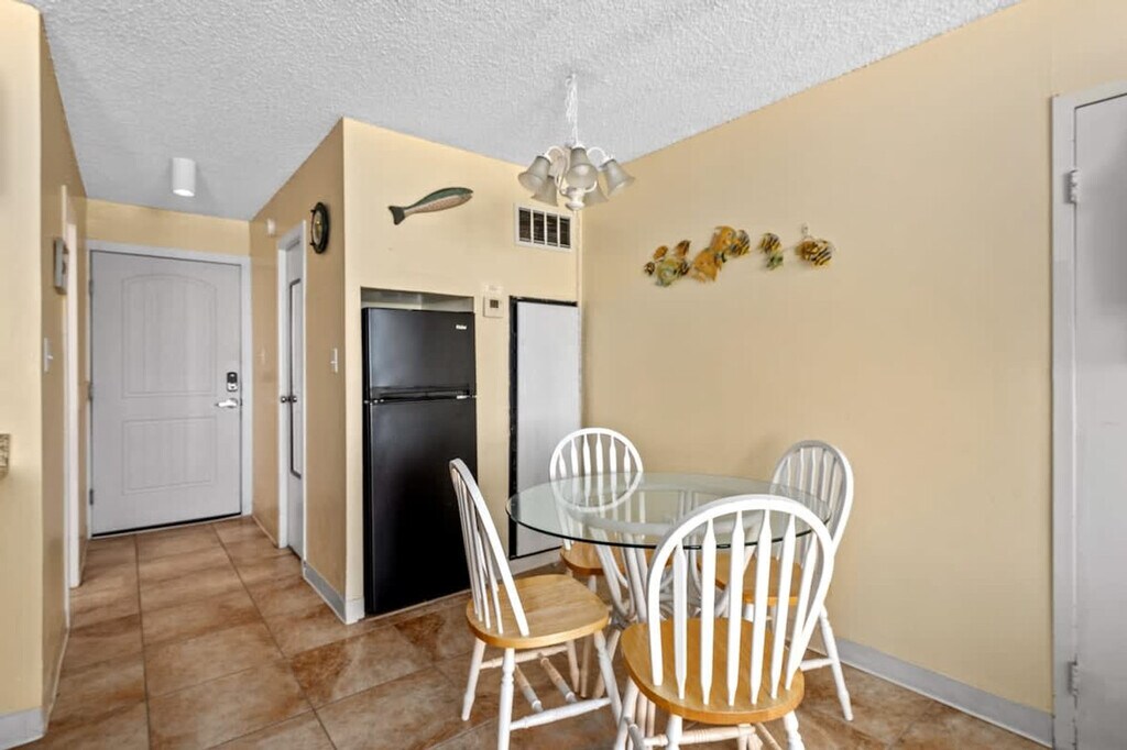 Feel at home in this economy beachfront studio in Panama City Beach. Perfect for budget-conscious travelers, this studio offers a comfortable coastal experience in a single living space. This studio-style condo provides a full coastal experience in a single living space. The space has a small kitchen with all the important appliances, including a dishwasher, coffee maker, and toaster. Sleep soundly in one of the two queen beds. A full bathroom is provided, as is a walk-in closet for ample storage space. There's plenty of seating to choose from, between the dining table, the beds, and the living room furnishings. Enjoy access to a pool, fitness center, and BBQ area. Upon arrival, all guests must register at the HOA office to receive their parking pass, located on the first floor to your left as you walk in. The cost of the parking pass is $30, and they accept credit card and cash. Within steps of Florida's beaches, nightlife, and dining, this condo is close to restaurants, bars, shops, and the Signal Hill Golf Course. Enjoy sports fishing, hiking in St. Andrews State Park, and walking to Dee's Hang Out for some crab cakes and Cajun remoulade. This property is for guests 21 years old and older. The unit accommodates up to 4 guests maximum (including children and infants of all ages). Having more guests than the maximum of 4 allowed by law could result in a fine starting at $500 and ejection, with no money refunded. Armbands must be worn at all times while on the property for safety. This is a non-smoking and non-pet-friendly unit. Quiet hours are observed between 11 PM and 7 AM. [SI]